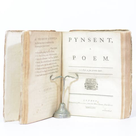 A collection of thirteen poems published from 1743 – 1766. 1. Robert Blair, The Grave. M.Cooper, 1743, [Foxon B271] 2. Evan Lloyd, The Methodist. For the author; 1766, signed by Lloyd in a blank space provided on the title page, [ESTC N67672, only three copies] 3. [McNamara Morgan], pseud: Porcupinus Pelagius. The ‘Piscopade: A Panegyri-Satiri-Serio-Comical Poem; second edition. For W. Owen, 1748. 4. [Edward Thompson] The Meretriciad; fourth edition; revised and corrected with large additions. For the author, 1763, [ESTC T172267, only three copies] 5. [Robert Glynn] The Day of Judgment:a poetical essay. Second edition. Cambridge: J. Bentham, 1757, [ESTC T32102] 6. [Sir William] Pynsent, Pynsent, a poem. J. Williams, 1766, [ESTC 46131, only three copies] 7. Edward Thompson, The Temple of Venus, a gentle satire on the times. C. Morgan, 1763, [ESTC 73304] 8. The British Coffee-House. A Poem. For the author, 1764, [ESTC T63317] 9. [Daniel Parent], Serious Thoughts on Death: or a Visit to the Dead…to which is added an Essay on Reason with An Universal Prayer, in imitation of Mr. Pope. For J. Swan, [1750]. [Foxon P63], [ESTC N25988, only two copies] 10. Richard Owen Cambridge. The Scribleriad: an Heroic Poem. For R. Dodsley, five of six books. Title page and engraved plate for each book. [ESTC T47211] 11. [McNamara Morgan] pseud, Porcupinus Pelagius. The Scandalizade…For G. Smith, 1750. [Foxon M459], [ESTC T54339] 12. –Satires on the Times. In Two Parts. For the author, 1764. [ESTC T112386] 13. W.H. Smyth. Love triumphant. A tale in verse. For the author, [1757], [ESTC N63159, one copy only, University of Chicago] Contemporary quarter calf with marbled boards. Spine and boards worn with some repairs to the spine. Ownership signatures and a contemporary hand written contents to the fep. Some spotting and browning.