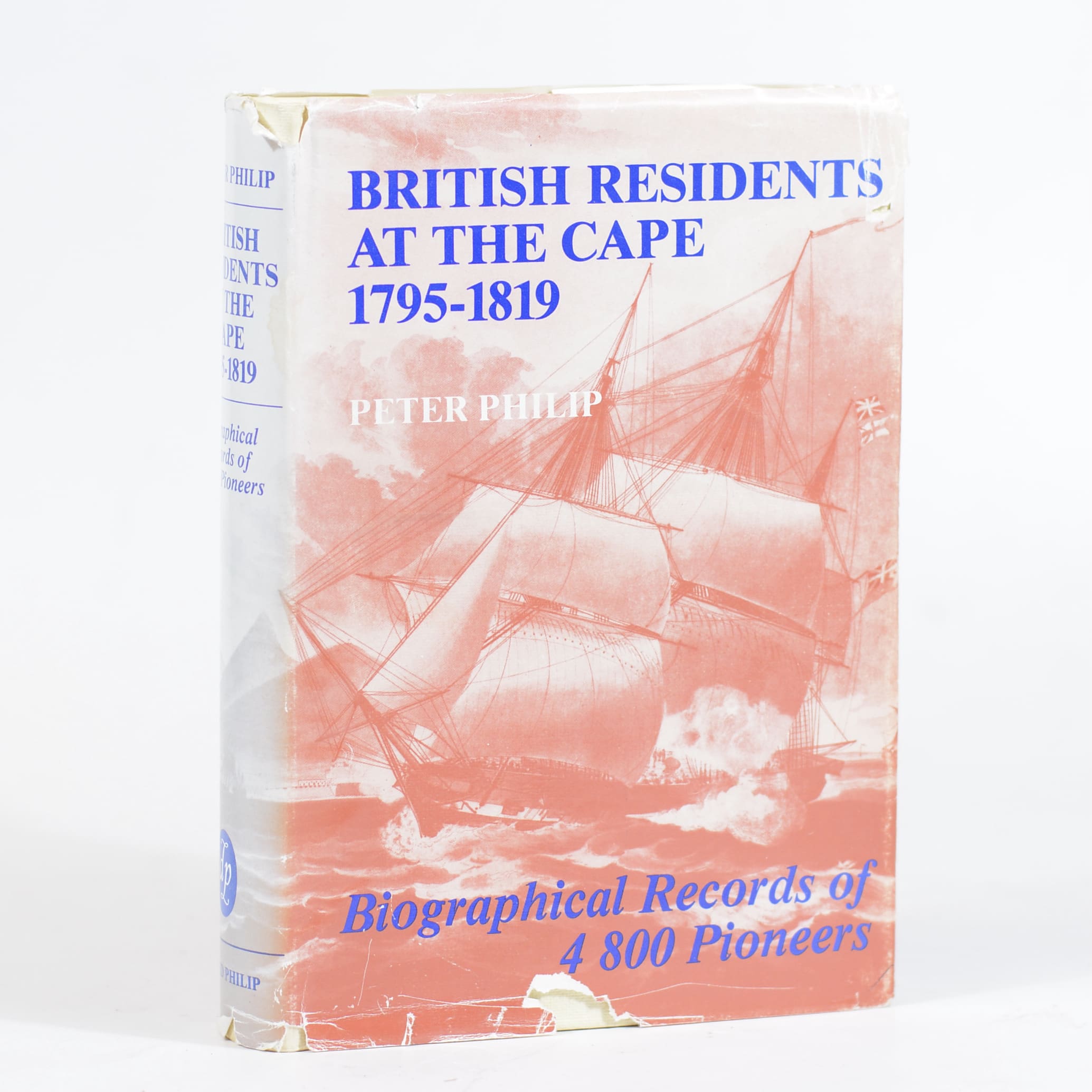 From the fly-leaf: “This reference book lists, in alphabetical order, over 4 800 pioneers of British stock who made the Cape their home during the first twenty-five years of British rule and before the first large-scale British settlement of 1820. Supplemented by General Notes and a Commentary; Street and Squares that have changed their Names; Some Misleading Surnames; British Regiments and Warships which served at the Cape and a Bibliography. Some insect nibbling to the edge of the front fep. 484 Page. Contents clean and binding tight. 1st Edition. Condition: Good+. Dust jacket: Good. Edge-wear. Small red label on rear cover. Binding:Hardcover. Evidence of insect nibbling to the lower edges.