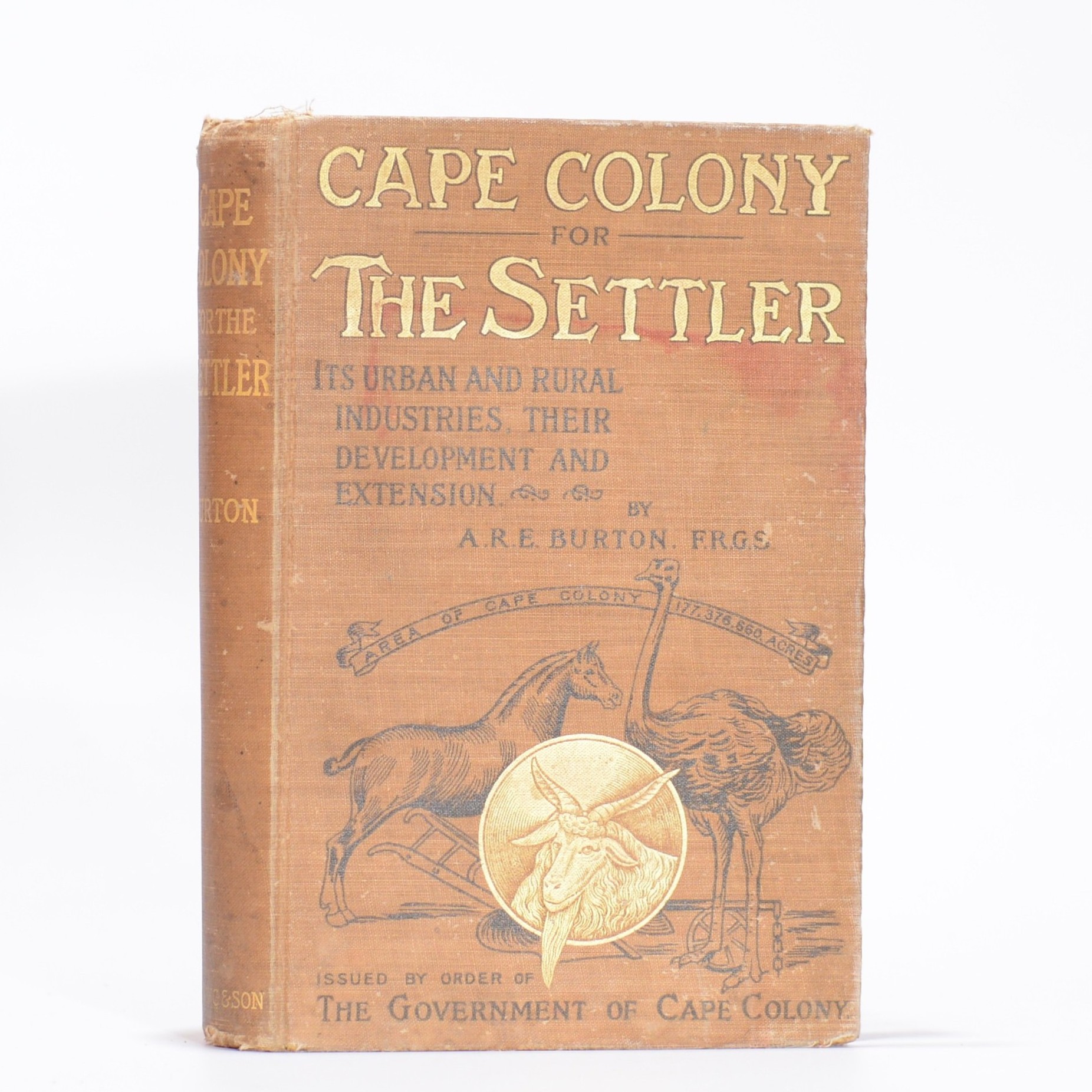 An account of its urban and rural industries, their probable future development and extension prepared for the guidance of those who may seek a home in the Cape Colony. Includes an Appendix and list of maps. Numerous illustrations. Missing one leaf. Name of previous owner to half-title page. Vintage advertisements at the rear. Scattered pencil underlining. Light cockling. Staining to the lower edges at the gutter. Tide-mark to the edges of the boards and some of the pages. Splitting to the end papers. Lean to the spine. Reading or research copy. 355 Pages. First Edition. Condition: Fair to poor. Binding: Hardcover. Wear to all edges with some fraying. Some insect nibbling to the cloth.