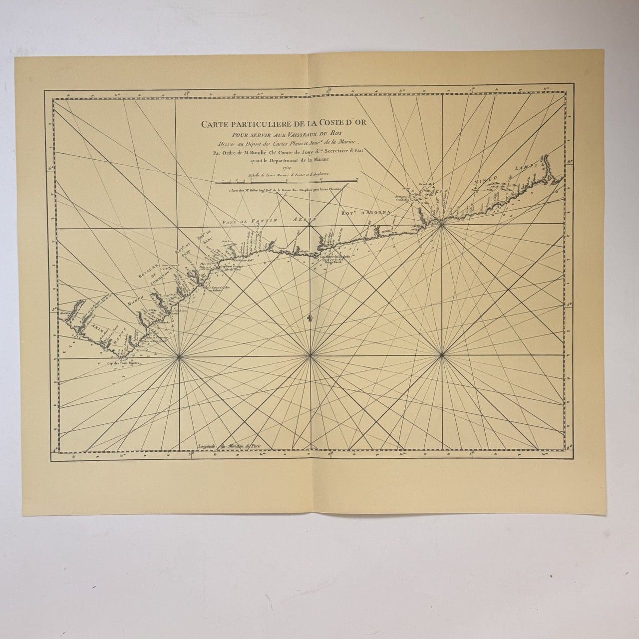 Map of the Gold Coast of Africa, now part of modern day Ghana. Originally published in 1750, this is a 20th century copy. Very good condition, sheet size: 66 x 52cm. Printed on good quality paper, with a central fold.