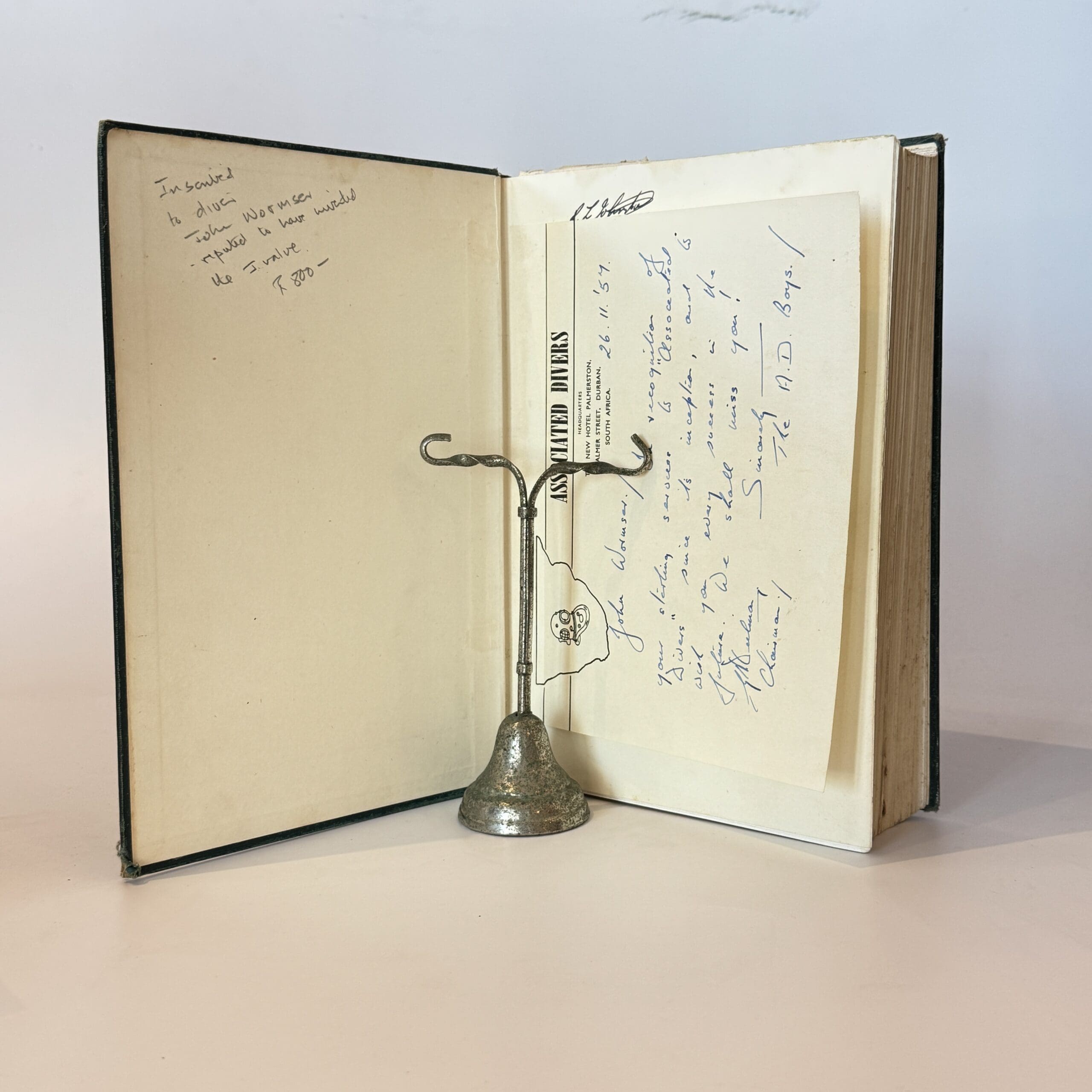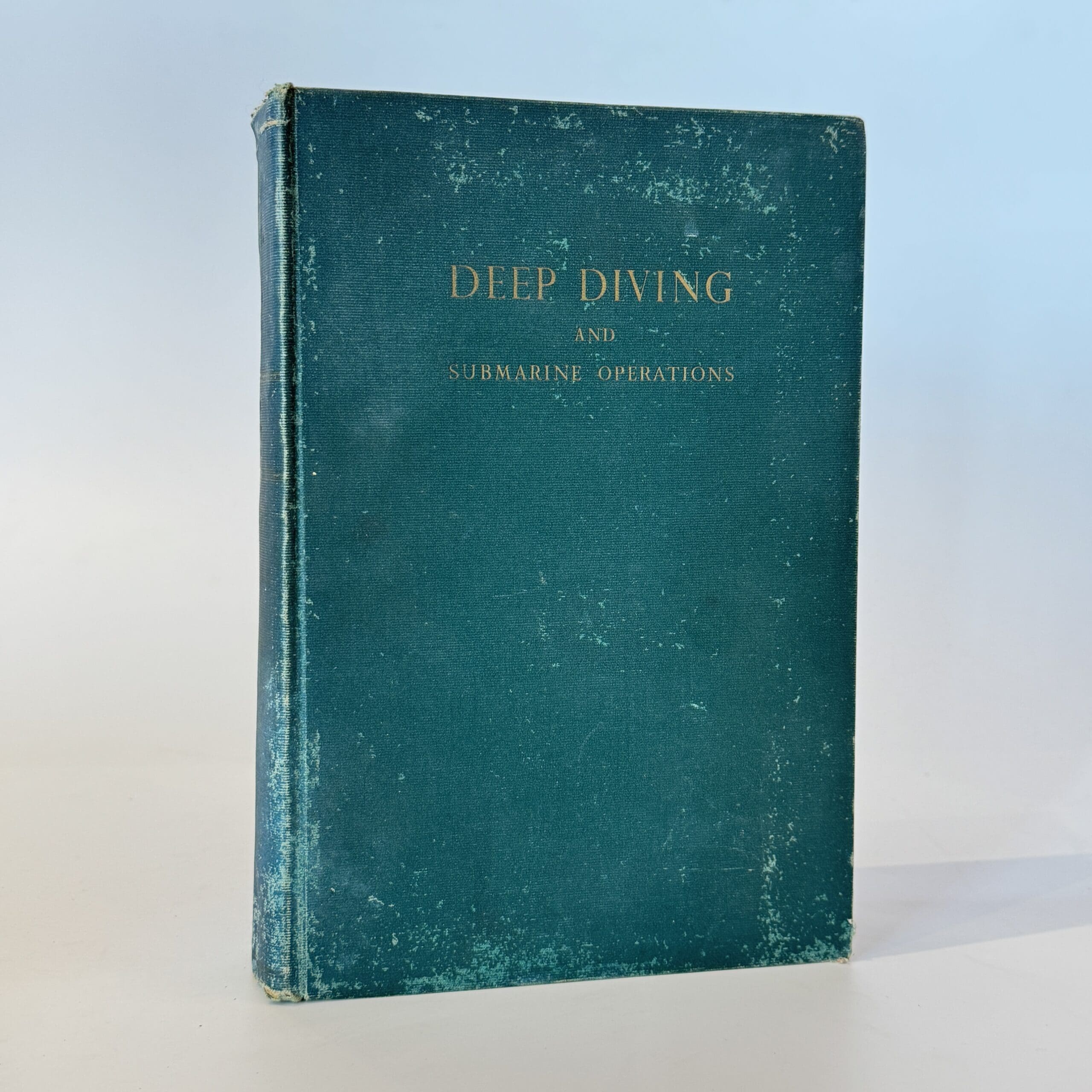 A manual for deep sea divers and compressed air workers. Inscribed to diver, John Wormser who is reputed to have invented the J-Valve, from the Chairman of Associated Divers with 13 Signatures from the A.D. Boys dated 1957. A couple of small discolouration marks to the fold-out ‘Diagrammatic impression of underwater activities. Abrasion to the verso of the frontispiece. 693 Pages. Contents clean and binding firm. 6th editiion. Condition: Good+. Binding: Hardcover. Cloth boards with some insect nibbling. Edge-wear with fraying to corners. Nicks and splits to header and footer. A few red marks to the rear board.