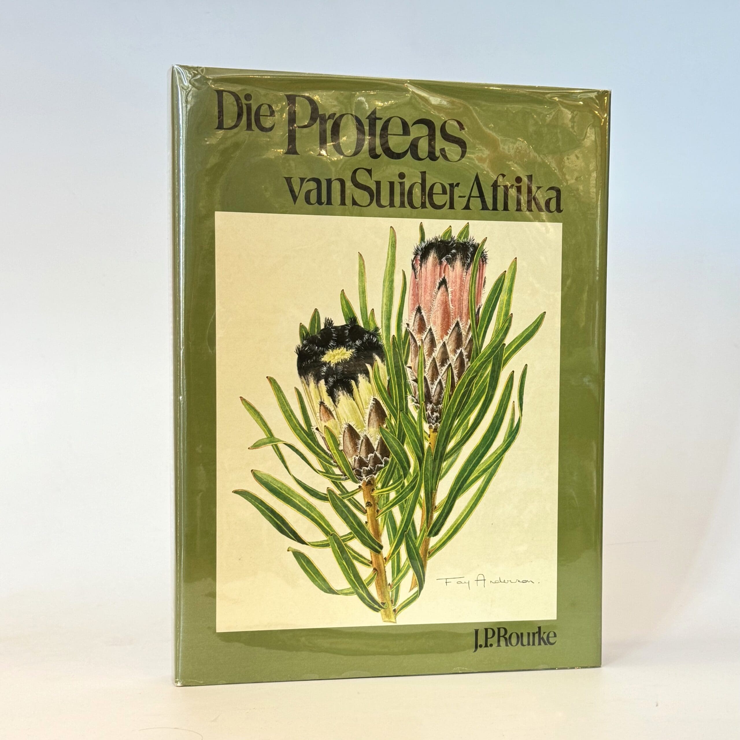 Text: Afrikaans. Approximately 90 colour plates of illustrations of the various proteacea. All the protea species occurring in Southern Africa described in full scientific detail with additional information on distribution, habitat and cultivation, together with historical background. Mild toning to feps. 236 Pages. Contents clean and binding sound. 1st Edition. Condition: Very good. Dust jacket: Good to very good. Some mild edge-wear. Binding: Hardcover. Green boards in very good condition.