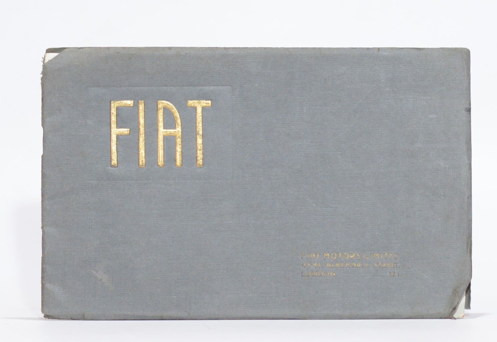 Catalogue No. 17. Specifications for: 10/15 h.p 4-cylinder Fiat chassis; Fiat Standard Two-seater; 15/20 h.p 4-cylinder fiat chassis; 15/20 h.p Three-quarter Landaulet de Luxe; 20/30 h.p 6-cylinder Fiat Chassis; 20/30 h.p. Three-quarter Limousine Landaulet. Center page attached by one staple. 28 Pages. Contents clean. Condition: Fair. Binding: Softcover. Thin card-wraps with edge-wear. 2cm tear to top edge. Staplebound. Rusty staples.