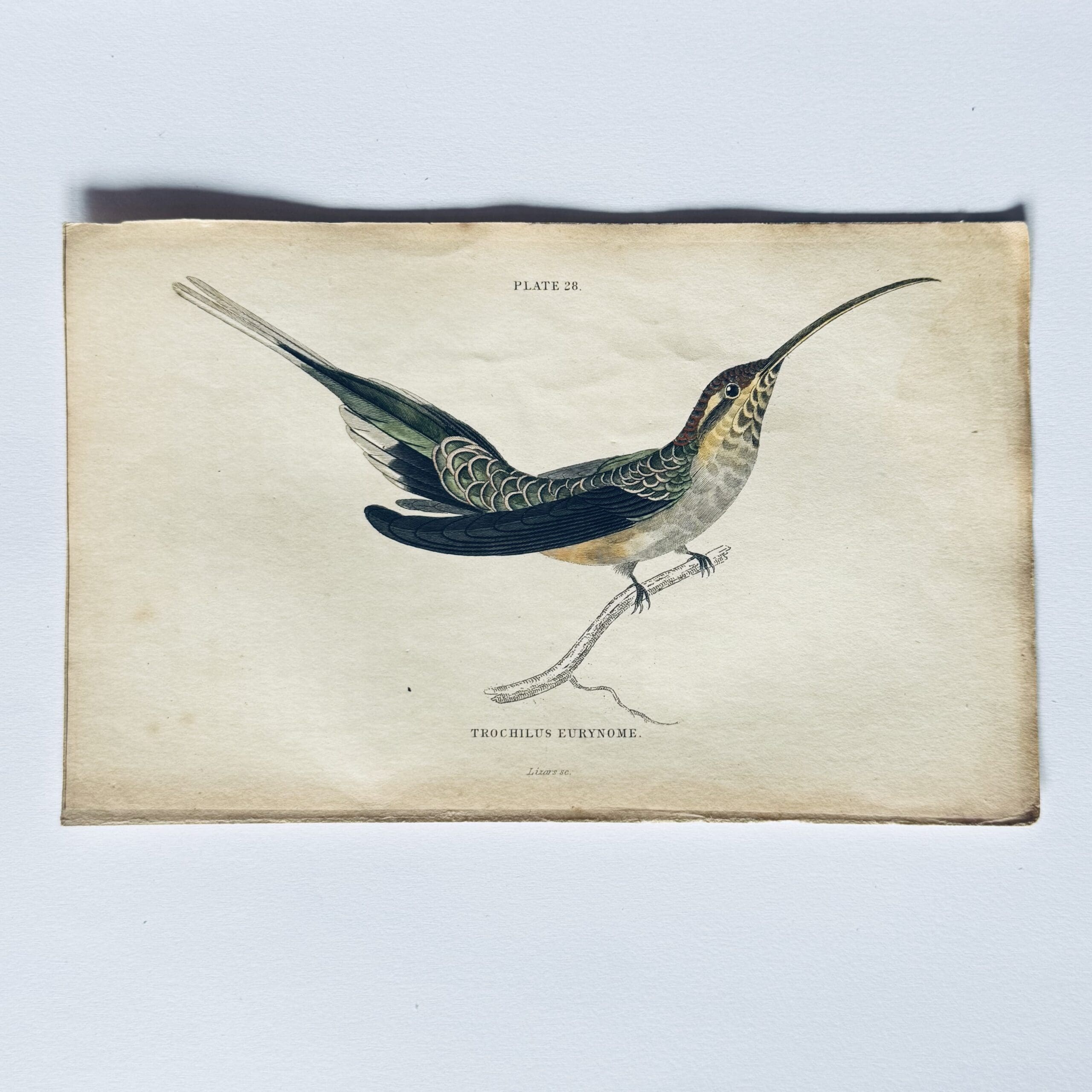 Hand coloured steel engraving from The Natural History of Humming-Birds – Plate 26 – Trochilus Eurynome – Jardine, William