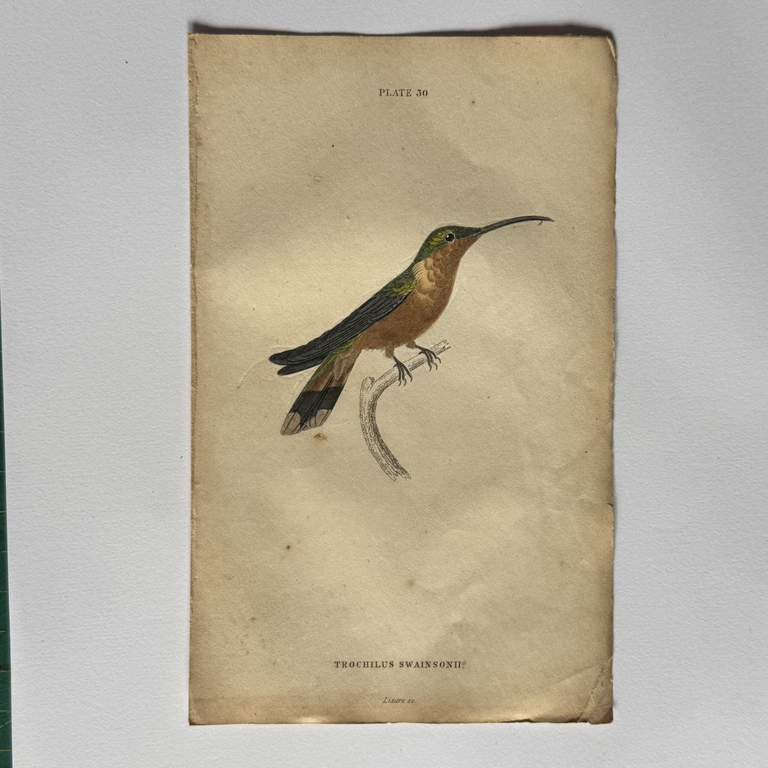 Hand coloured steel engraving from The Natural History of Humming-Birds – Plate 30 – Trochilus Swainsonii – Jardine, William