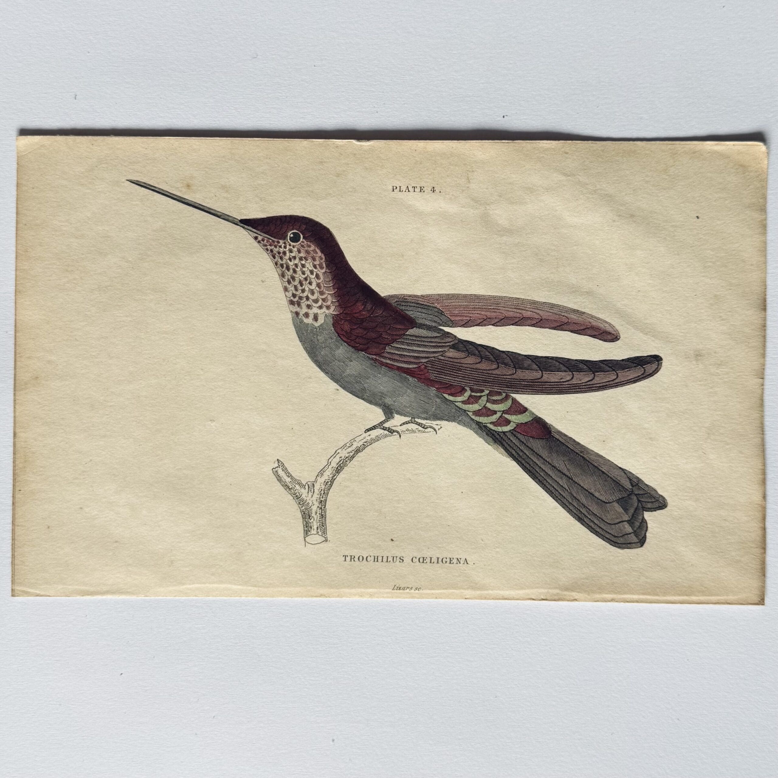 Hand coloured steel engraving from The Natural History of Humming-Birds – Plate 4- Trochilus Cœligena – Jardine, William