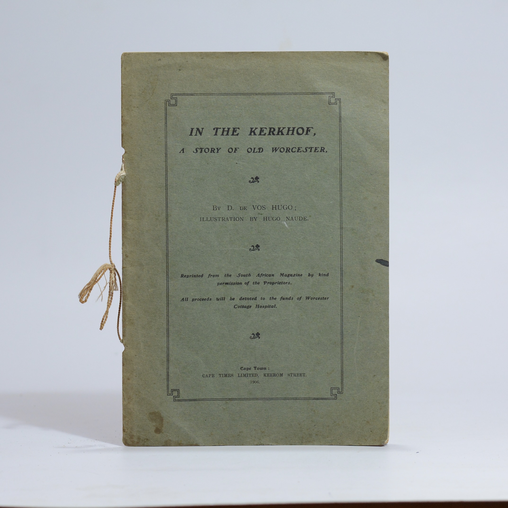 A slim volume, reprinted from the South African Magazine. The accompanying illustration, by Hugo Naude, the well-known local artist, is of the Worcester Kerkhof as it appeared at the period in which the action of the tale took place. 7 Pages. Condition: Fair to good. Binding: Softcover. Limp cardwraps with some edge-wear and handling marks. Bound with an old silk cord and one staple.