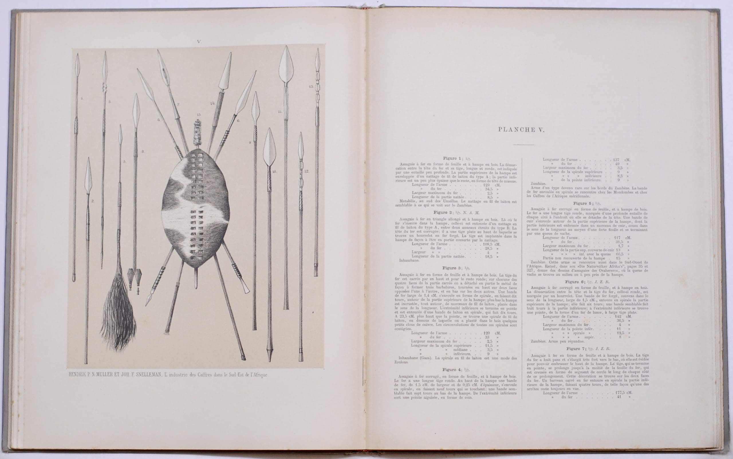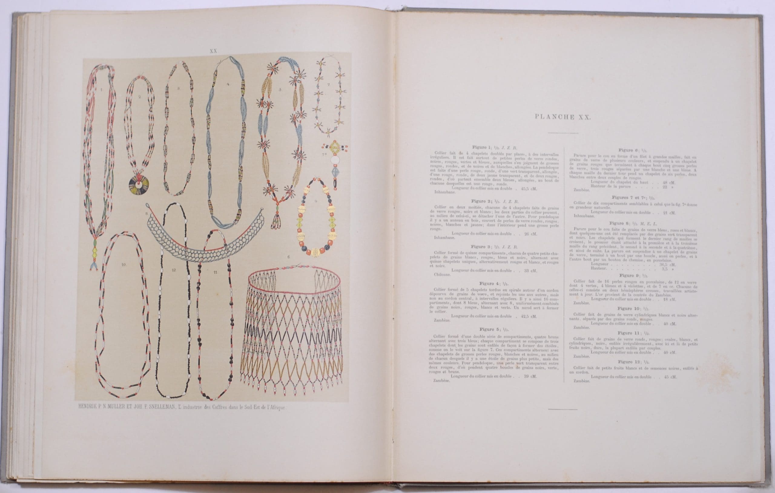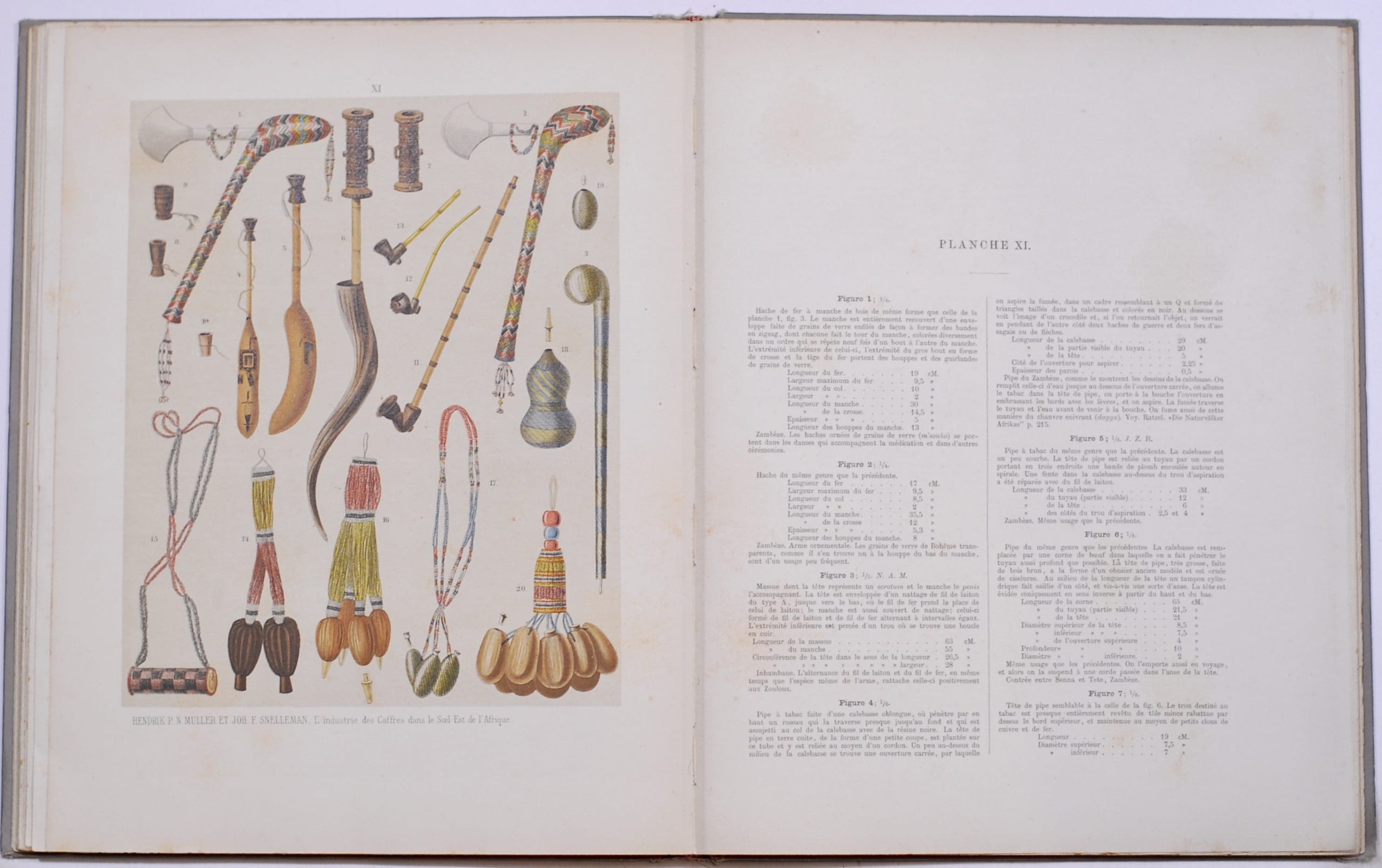 The most important early work on South African and South East African tribal art, weapons and beadwork. The edition is estimated at approximately 100 copies, including 90 in folio form. These were produced for royalty and for the most part remain in libraries. — Pieter Nicolaas Muller (1859-1941), the author was a Dutch businessman, diplomat and traveller. He was the son of a prominent Rotterdam-based business family. Muller started his career as a businessman, trading in East and West Africa as the interim manager of Handels Compagnie Mozambique. Between 1882 – 1883, together with Snelleman, he travelled to Zanzibar visiting trading stores. Once the business trip was concluded they walked through present-day Mozambique and Zululand, collecting ethnographic artifacts and writing reports on the societies and people they encountered on their way. Articles of the trip were published in Dutch journals and newspapers. 27 chromolithographed plates. First edition Very good Hardcover
