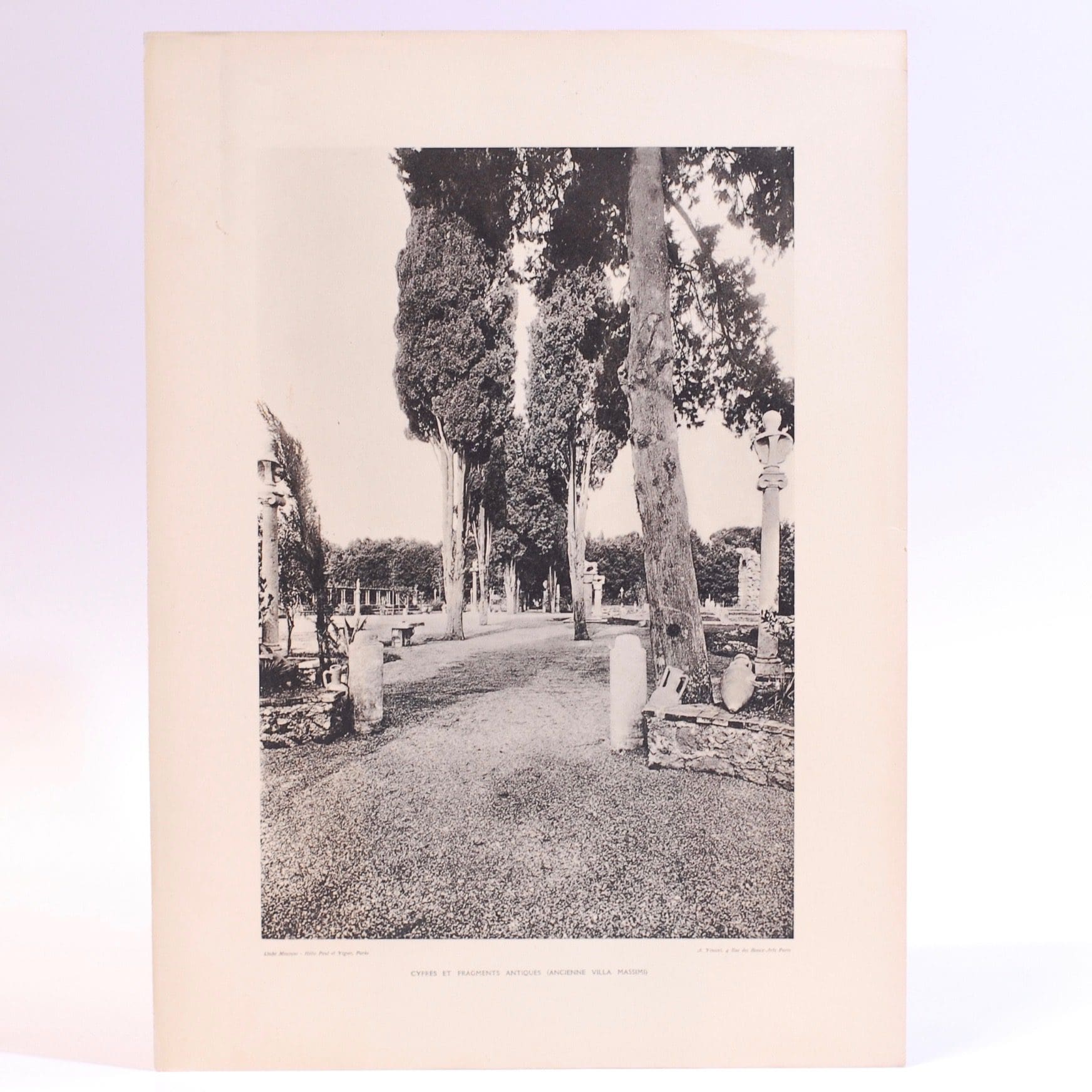 Volumes 1 & 2 with a total of 148 plates, interleaved with text pages for the various villas and their gardens. Two large portfolios with red marbled boards, flecked with gold and gilt titles. Spines to both portfolio cases missing. Ties are all present. Some light edge wear to a few plates.