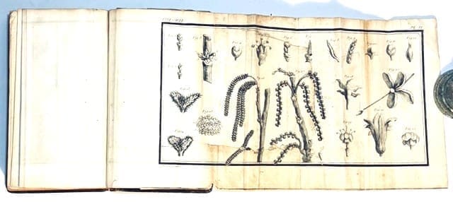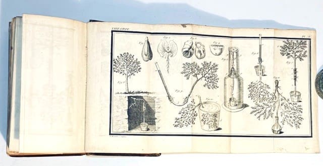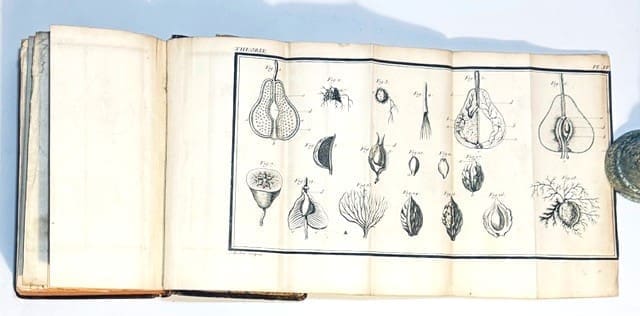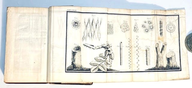 A horticultural treatise containing 5 engraved folding plates after J. Robert, depicting grafting, plants, pruning fruit trees, etc. The work consists of a series of short treatises on gardening in general, peach growing, shelters, trellises, pruning of fruit trees, orange tree growing, cauliflowers, cardoons, melons, etc., as well as strawberries and the cultivation of grapevines, etc. 8vo, portrait frontis, xliv, 558pg, [4], 1 pg. errata, 5 folding plates, one with repairs, others with a few stains to the rear. Approximately two thirds of pg. 65-70, and one third of pg.537/8 have been cut out. Edition: Nouvelle Edition. Condition: Good. Binding: Full contemporary calf binding. 5 raised bands and gilt decorations to the spine. Some neat tissue repairs to the head of spine and fore-edges of the boards. Red tint to the page edges and marbled end papers.