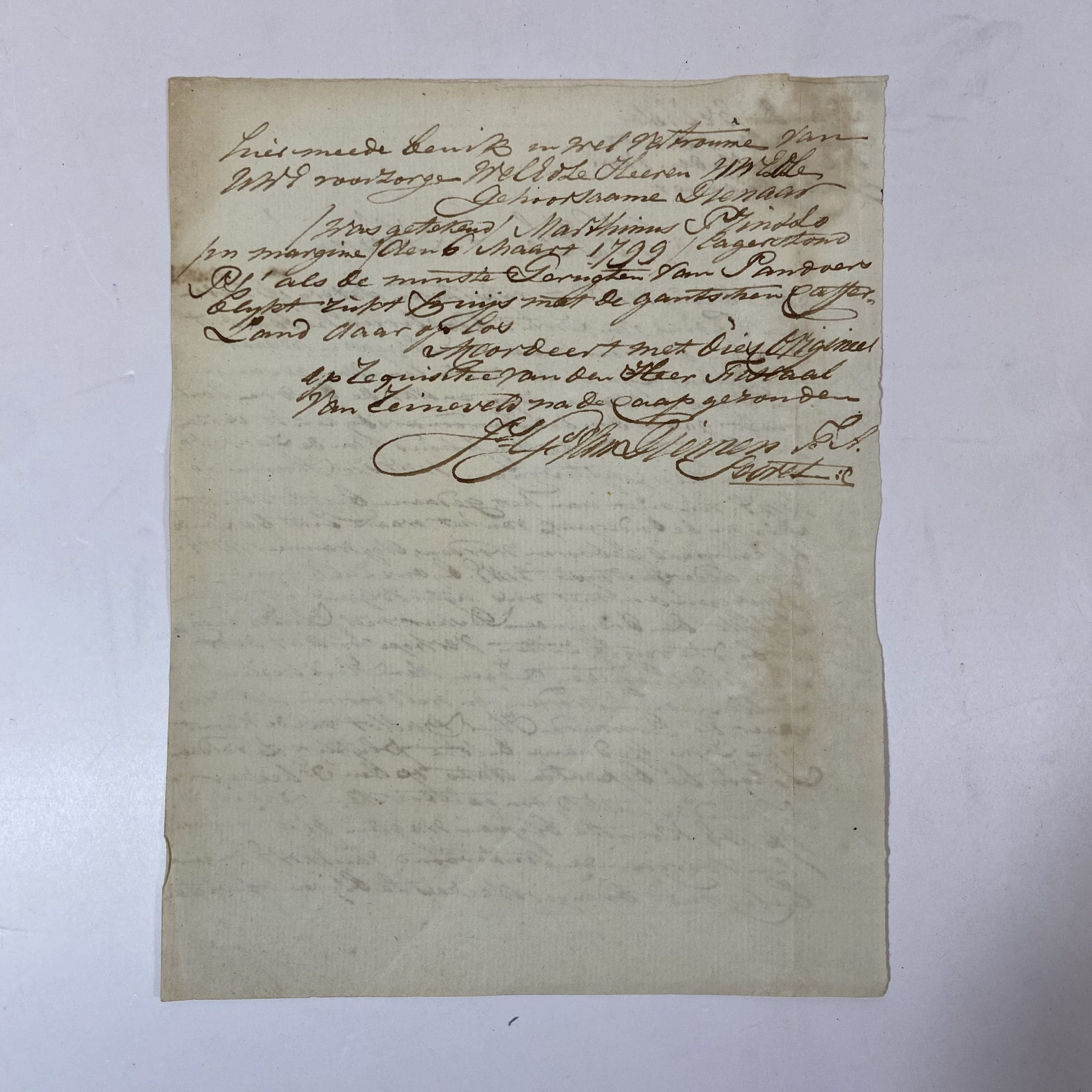 An A5 sheet written on both sides. Addressed to the Landrost of Graaff-Rienet and dated 6 March 1799.