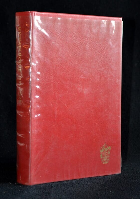 Binding: Red rexine covered boards with gilt lettering and coat of arms.