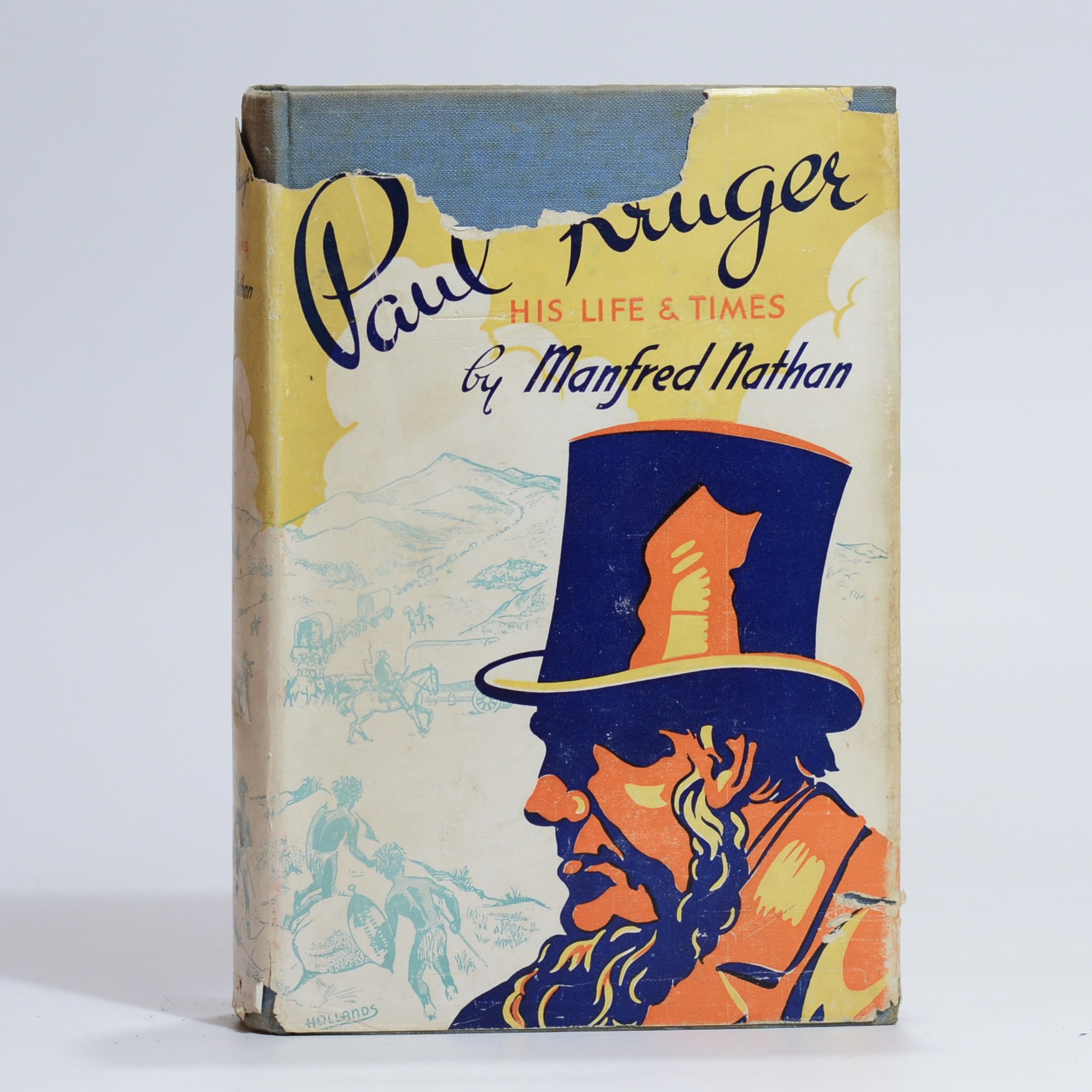 A biography on Paul Kruger. A man whose life was bound up and inseparable from the story of South Africa during the latter half of the nineteenth century. Pencil underlining and marginalia throughout. Foxing to prelims with mild scattered foxing to contents. Splitting to end papers. 510 Pages. Second Edition. Condition: Good. Dust jacket: Fair. Loss to the top edge. Tears to the fold edges. Discolouration marks to the verso. Binding: Hardcover. Cloth boards with foxing and sunning. Edge-wear.