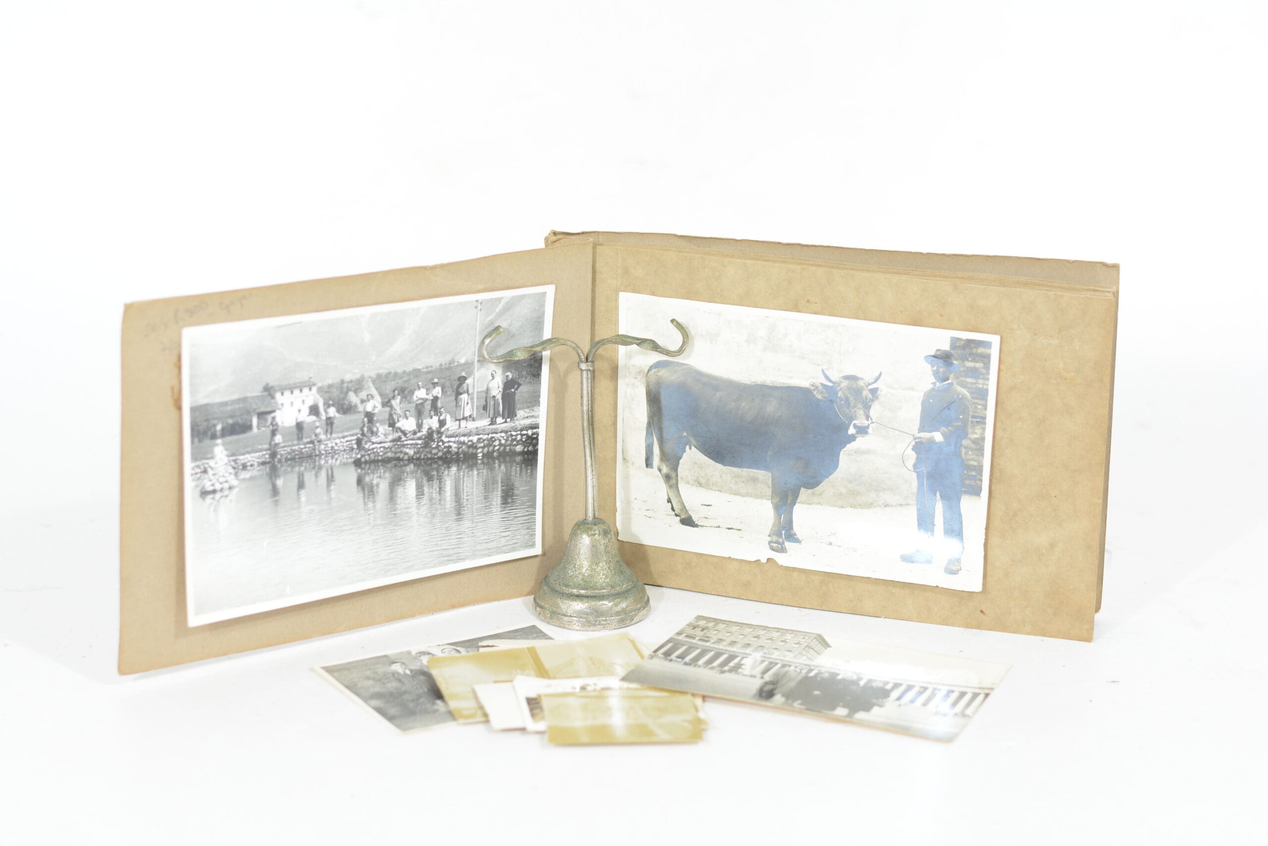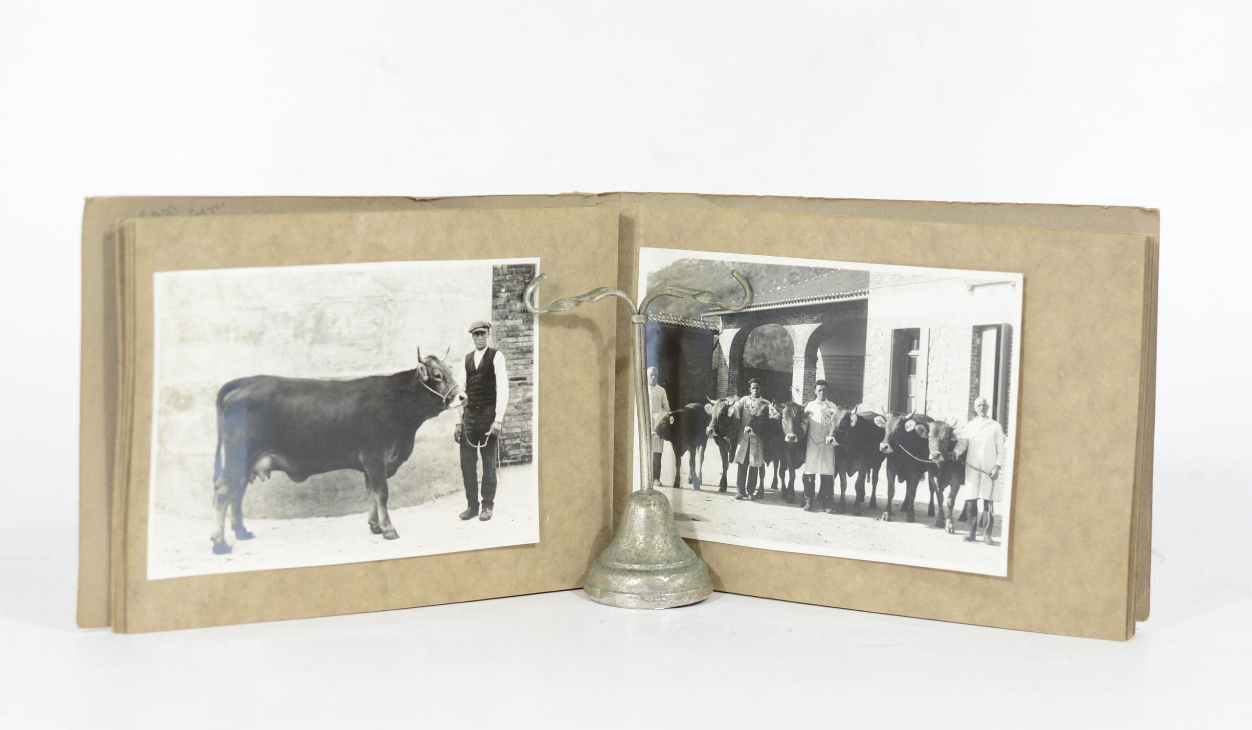26 black and white tipped in photographs of cattle, dairy, farm buildings, family, fruit trees, 12 loose b&w photographs of varying sizes. Condition: Good. Binding: Thick card-wraps. Bound with chord.