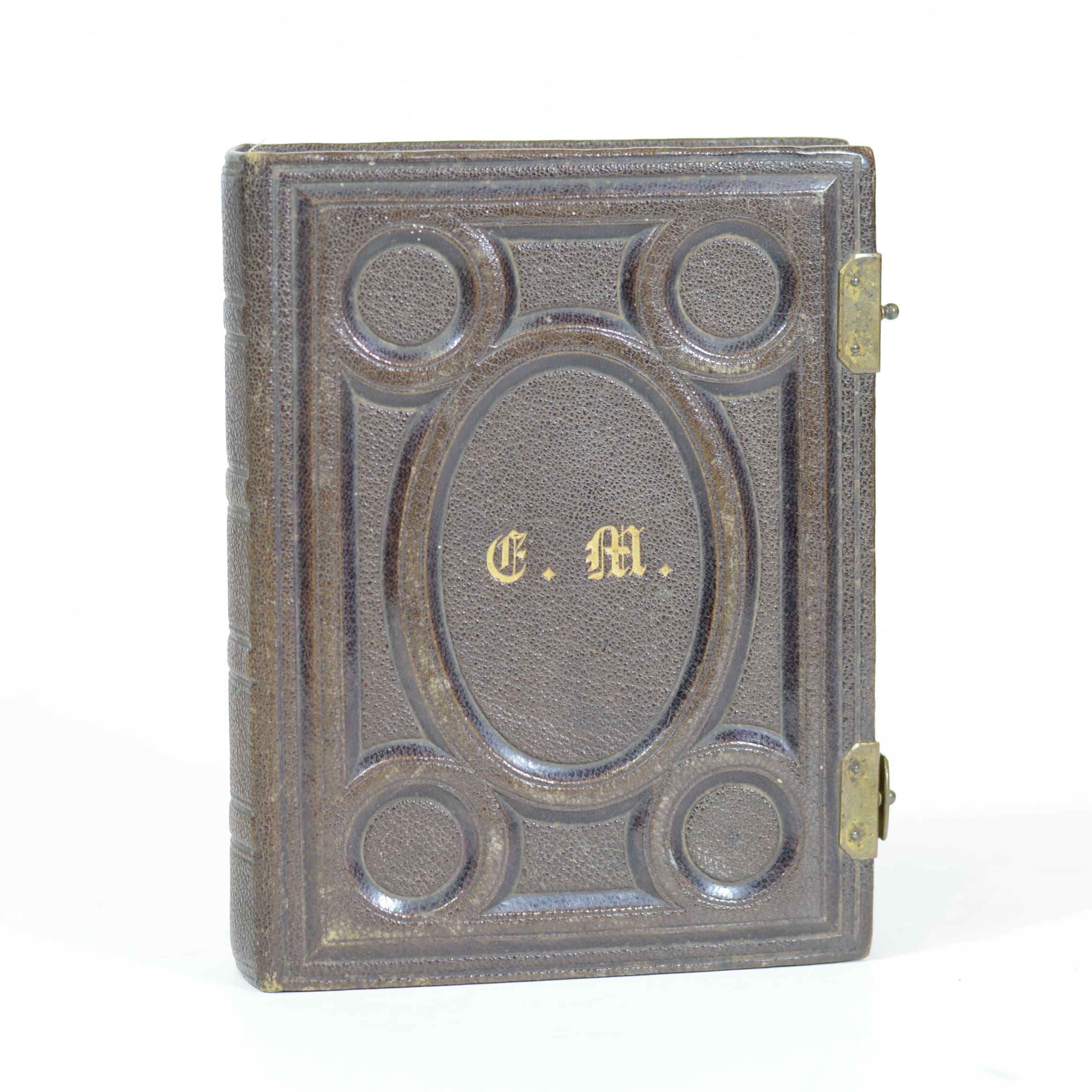 A decorative leatherbound album containing 30 small portrait photographs of the family Williams. Size of photographs 10cm x 6.2cm. Manchester to South Africa. Missing the one clasp. 2 of the photographs are faded, 1 photograph of a gentleman wearing a Free Mason apron. The others being in good condition. Gilt to all edges.