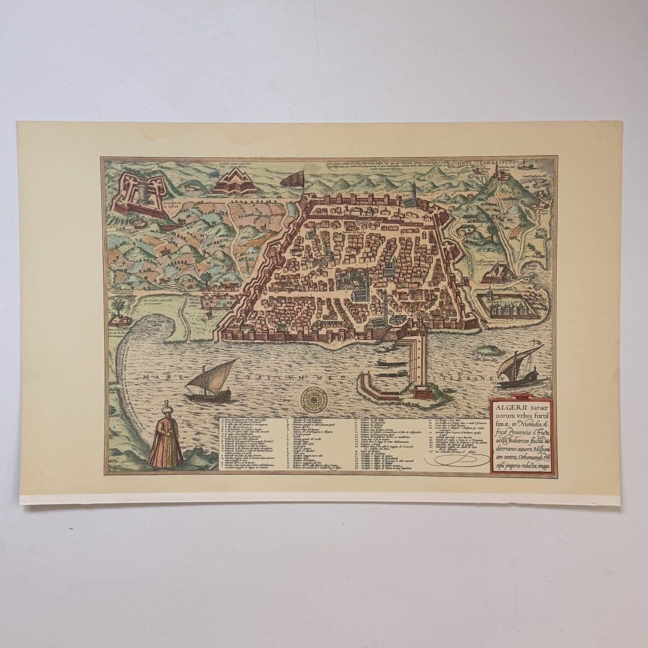 Plan of the city of Algiers from the Civitates Orbis Terrarum, a town atlas originally published between 1572 and 1617 This is a 20th century copy. Very good condition, sheet size: 52 x 33cm. Printed on good quality paper.