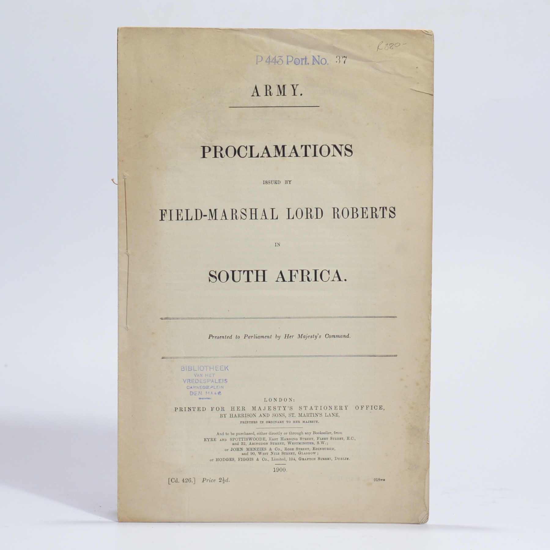 Proclamations issued by Field-Marshal Lord Roberts in South Africa –