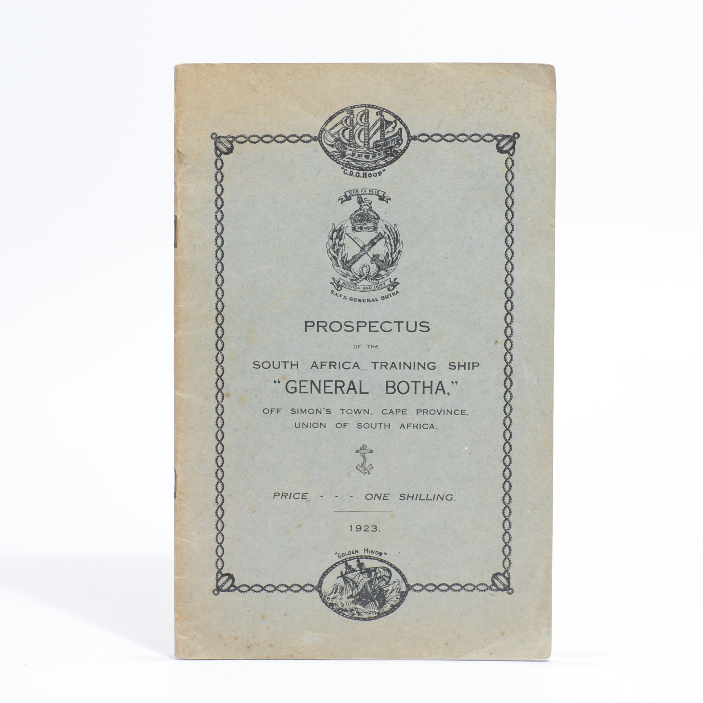 The “General Botha” was presented to South Africa by T B F Davis, Esq. of Durban in memoriam of his son, Howard who was killed in action in Flanders during the Great War, in order to train boys for the sea, principally for the Mercantile Marine, but also for the Royal Navy and the South African Naval Service. The vessel was formerly known as “H.M.S. Thames”, a third-class cruiser built in Devonport in 1886 as a submarine depot ship. a number of b&w photographs. Foxing throughout. 22 Pages. First Edition. Condition: Good. Binding: Softcover. Limp cardwraps with some sunning and foxing. Staple-bound.