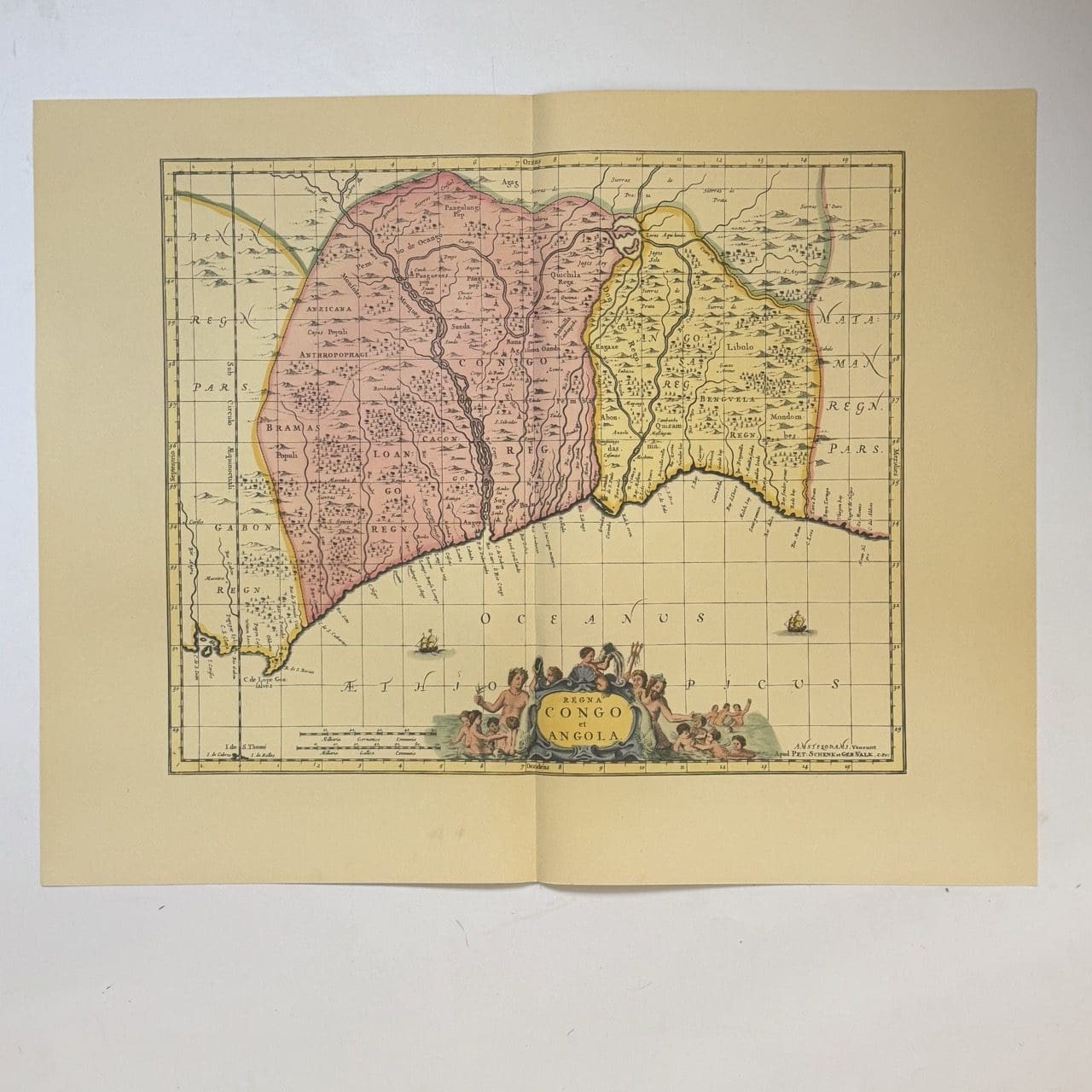 A 17th century map of Congo and Angola. A 20th century copy. The original was first published in 1660 and re-issued many times. Very good condition, sheet size: 66 x 52cm. Printed on good quality paper, with a central fold.