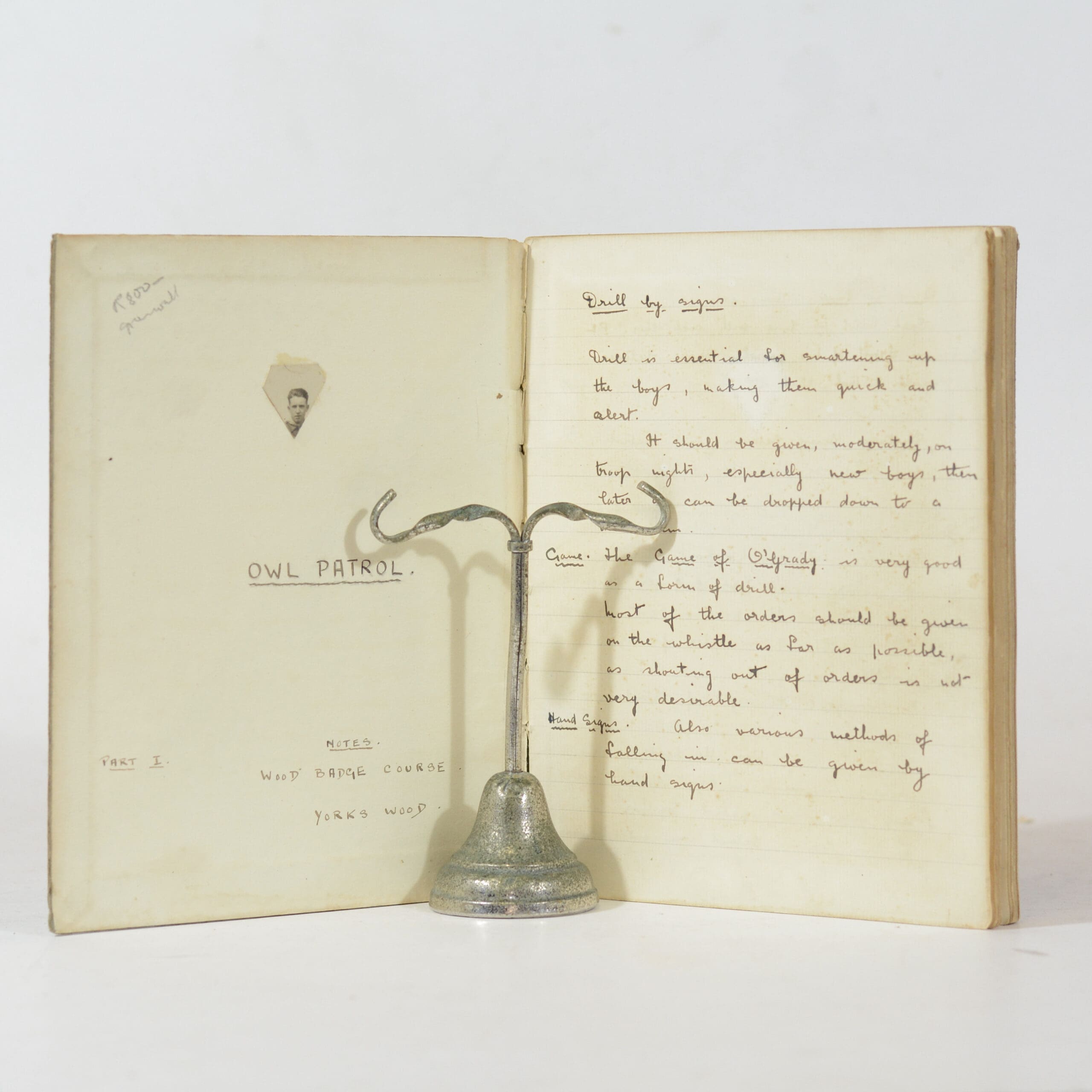 Detailed notes and sketches of all matters relating to scouting at a training camp. Small cut out photograph of author on fixed end paper. Notes: Wood Badge Course, Yorks Wood. Binding is loose in some parts. Condition: Fair to good. Binding: Hardcover. Cloth spine. Edge-wear to all extremities. Some abrasions. Lacks the header and footer of spine.