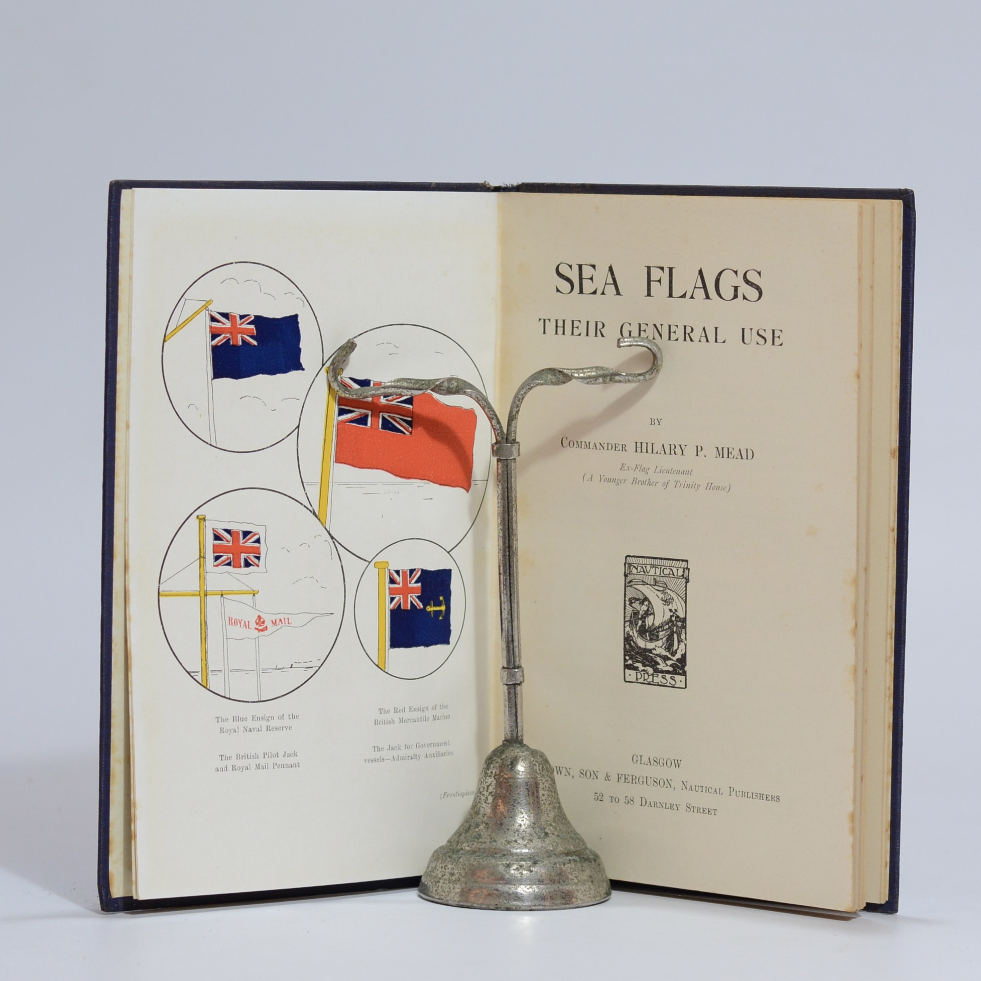 Published for the use of officers of the Mercantile Marine. Includes miscellanwous flags and signals such as for ‘depth of water on the bar’, ‘wreck’, ‘powder’, ‘petrol’, etc. 105 Pages. Some light foxing to all edges. Condition: Good. Binding: Hardcover. Cloth boards. Some light edge-wear.