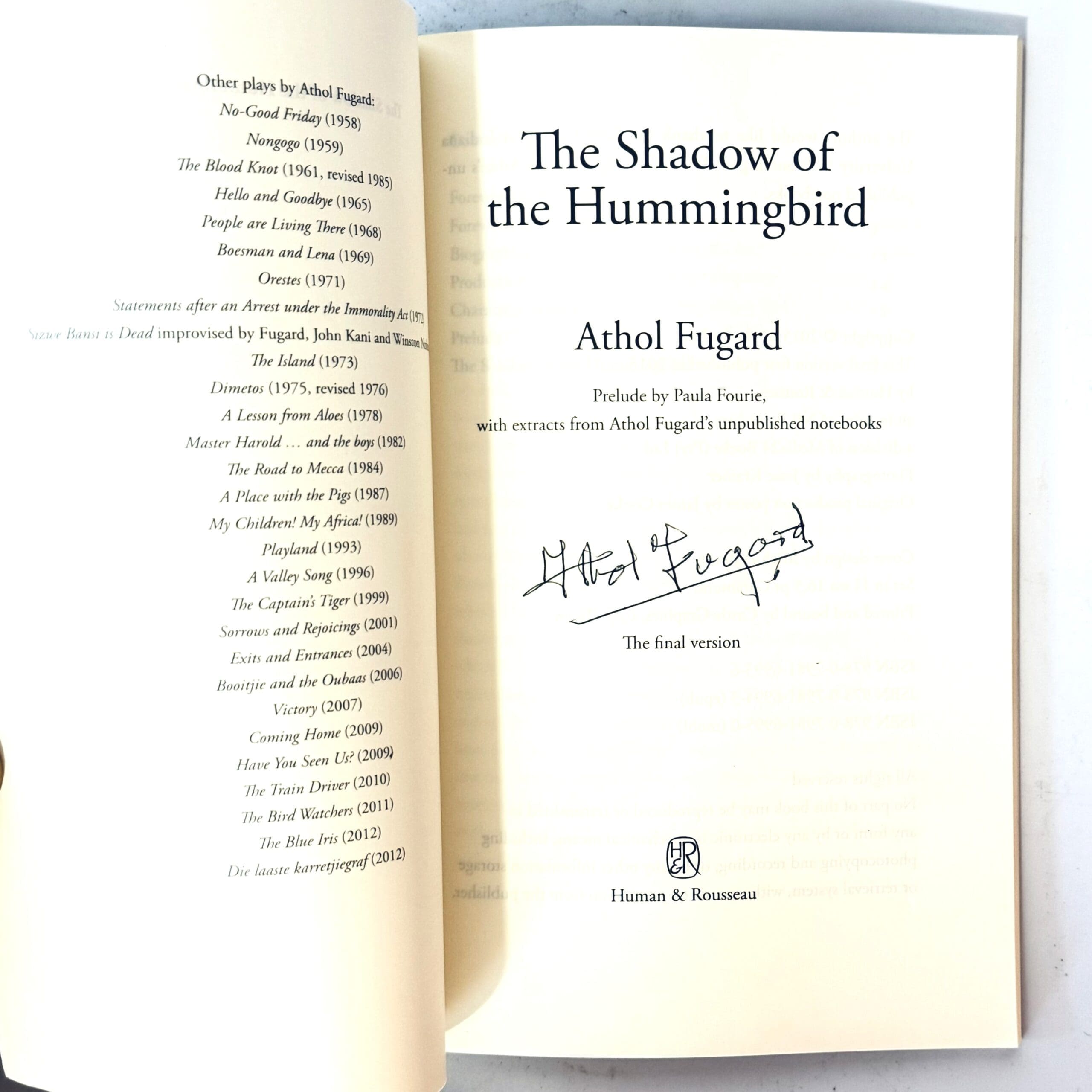 Signed by the author. A play exploring the loss of innocence and the need to maintain a sense of wonder at the fleeting beauty of the world. Remnant of a label on the rear cover. 60 Pages. Contents clean and binding firm. First Editiion. Condition: Good. Binding: Softcover. A spot of mild edge-wear.