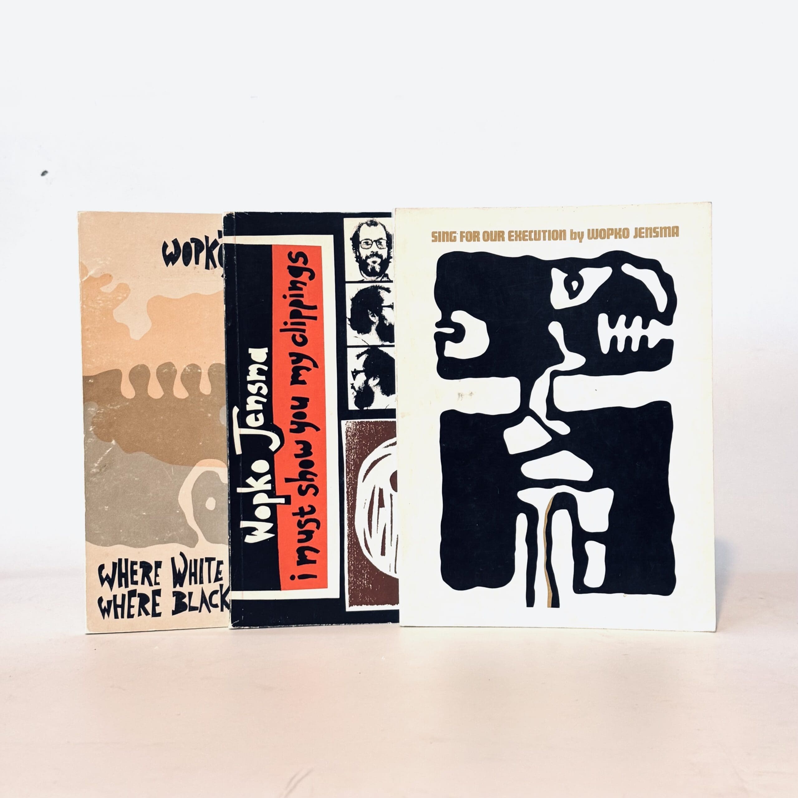 Wopko Jensma’s only three published books. Two volumes are signed and inscribed to South African artist, Wynand Smit. Text: English and Afrikaans. Binding: Some edge-wear and handling marks to the cardwraps. Some thumbing. Condition: Good. Binding: Softcover.