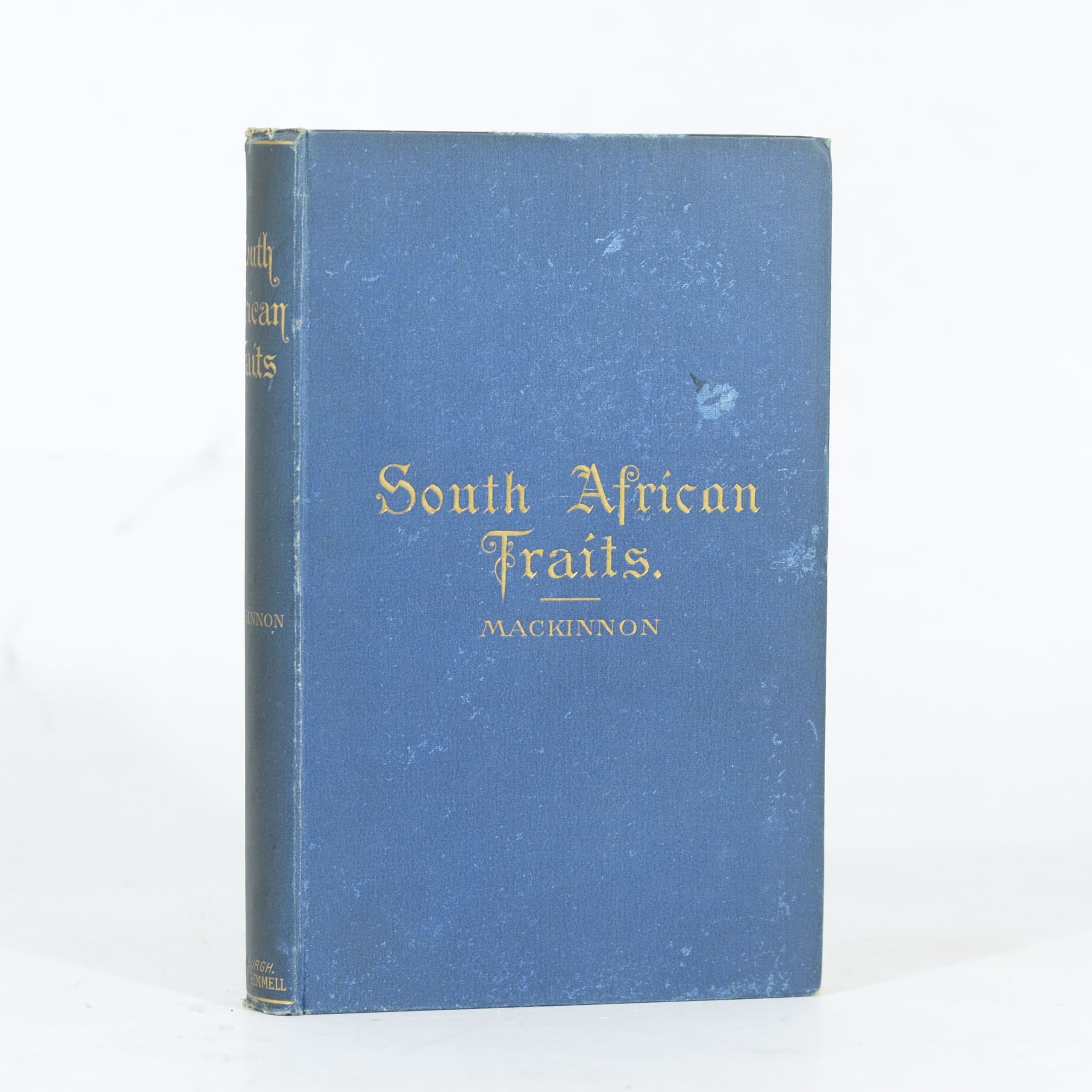 Observations of people and daily life in South Africa by the author who spect 3 years in the Cape whilst studying at the Theology institute in Stellenbosch. Contents include: The Karoo; Natal; Boer war battles; Slavery and serfdom; Herosim and tragedy; Africander Bond and the Empire; Religious Life; Diamond and goldfield; and politics. Discolouration mark from an old label to fep. Some deckle edging. Some light edge-wear to top edge of pages. Toning with light foxing to rear end papers. 301 Pages. 1st Edition. Fair to good. No dust jacket. Hardcover. Blue cloth with some light edge-wear, a couple of light circular discolouration marks and some light insect nibbling.