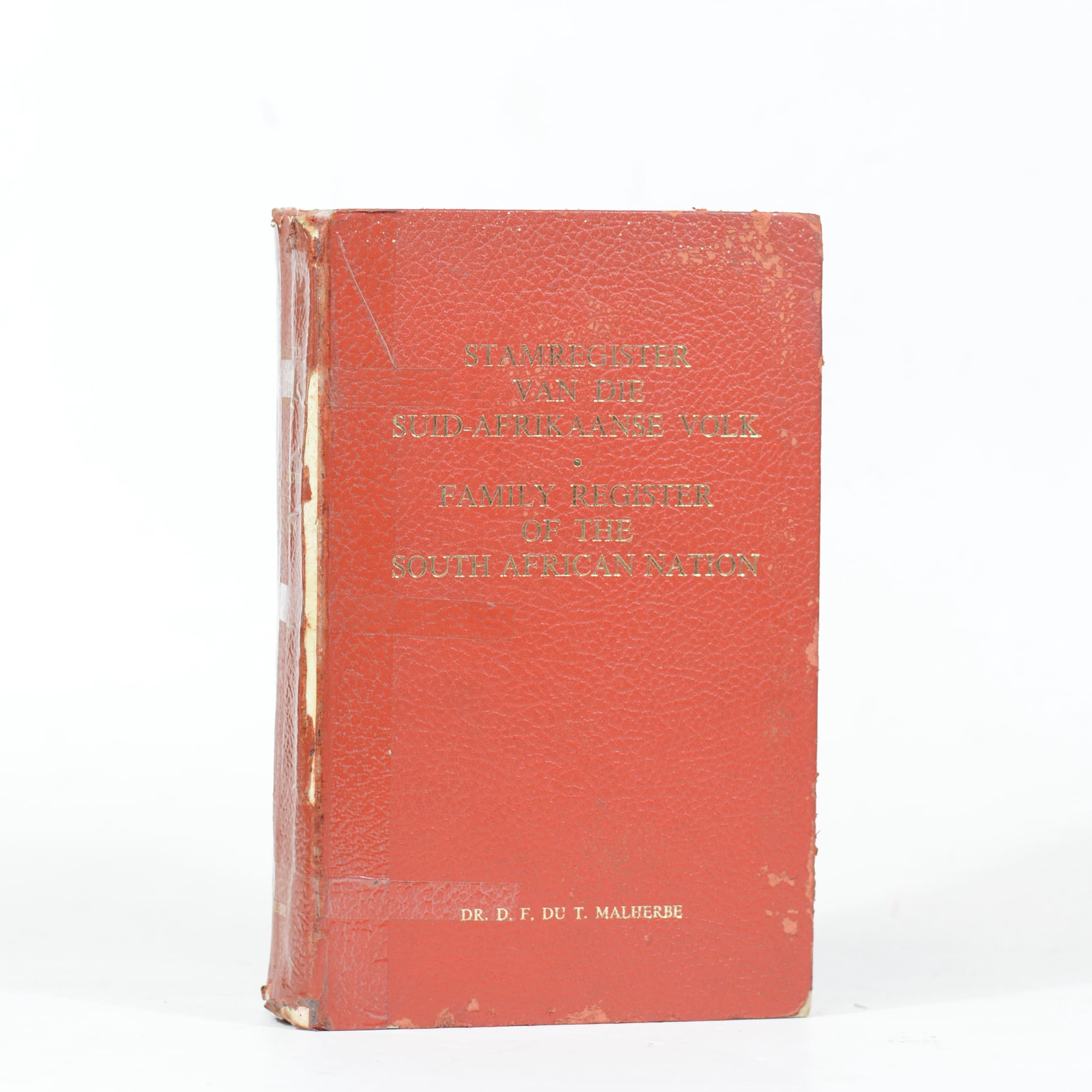 The author has enlarged this great work by supplying details of families not mentioned in the Geslacht-register by C C de Villiers, as well as information about later arrivals. Includes research into the contribution of English and German families. Spine edges are protected with clear tape. Abrasions to the leather boards. Ex libris stamp, previous owners names and an inscription by the author, on the end papers. 1208 Pages. Contents clean and binding sound. 3rd Enlarged Edition. Condition: Good-. Hardcover. Leather boards in poor condition. Gilt lettering. Edge-wear to all extremities.