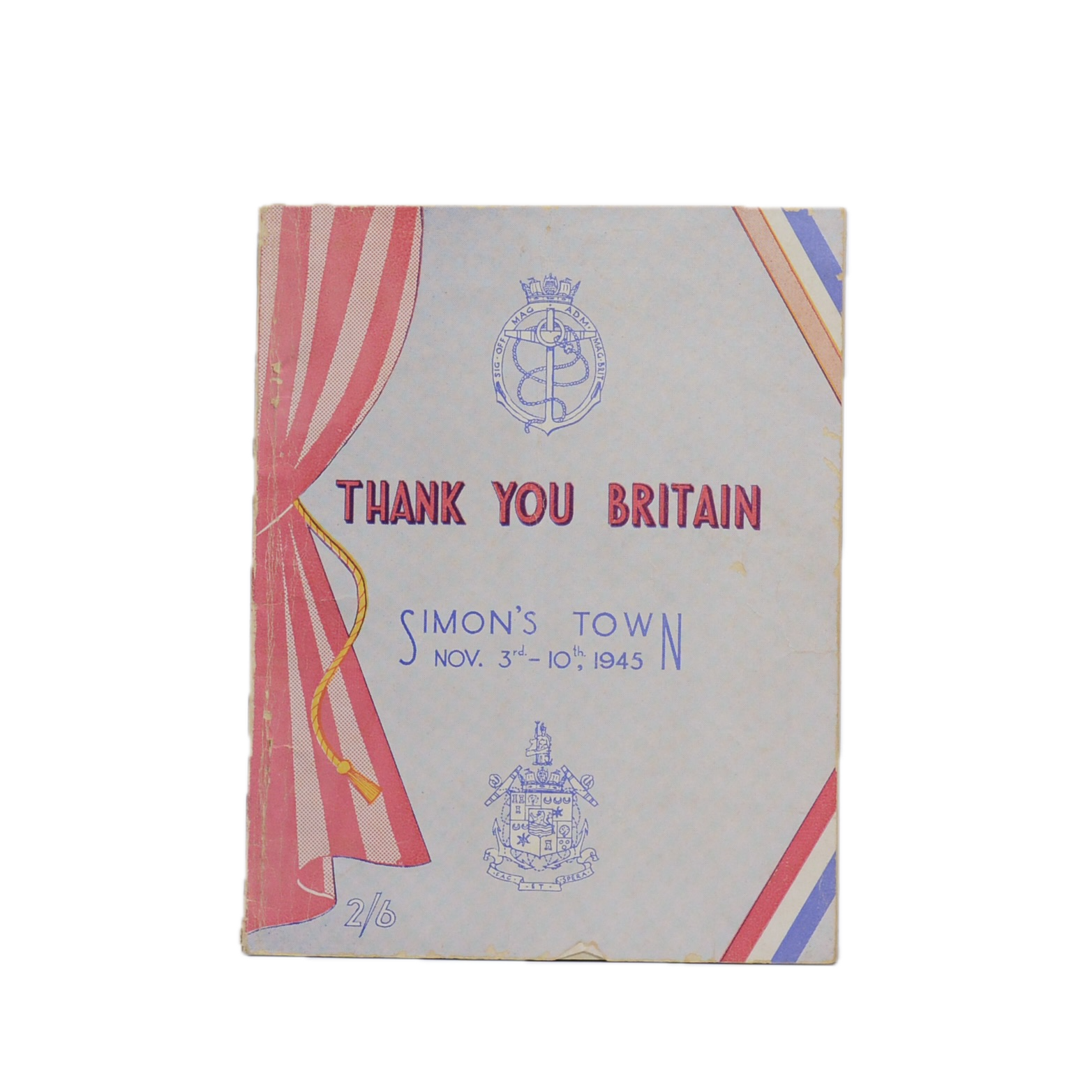 Publication to exhibit to the public the effort by the navy at Simonstown during the Second World War. Includes a small Union Jack on silk.