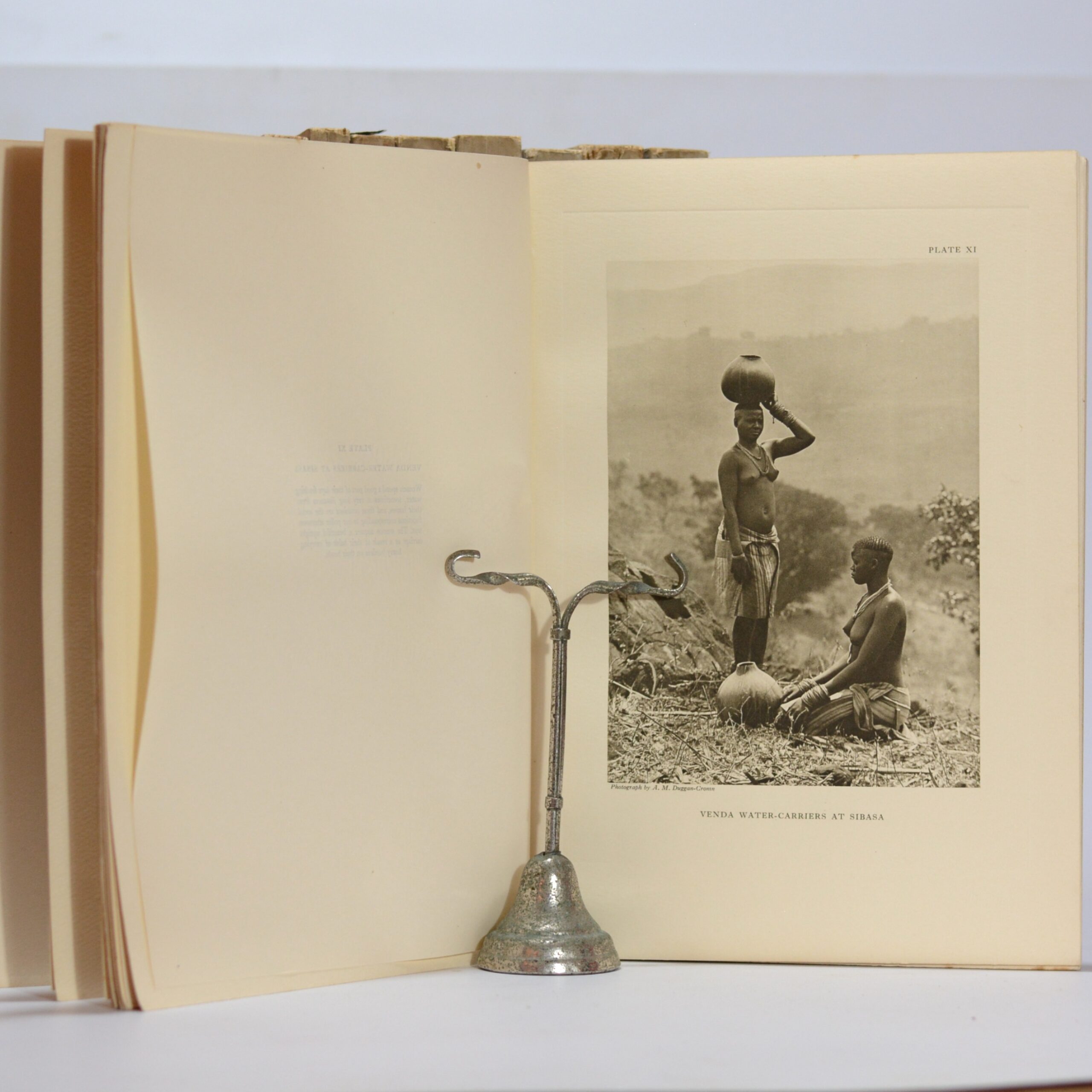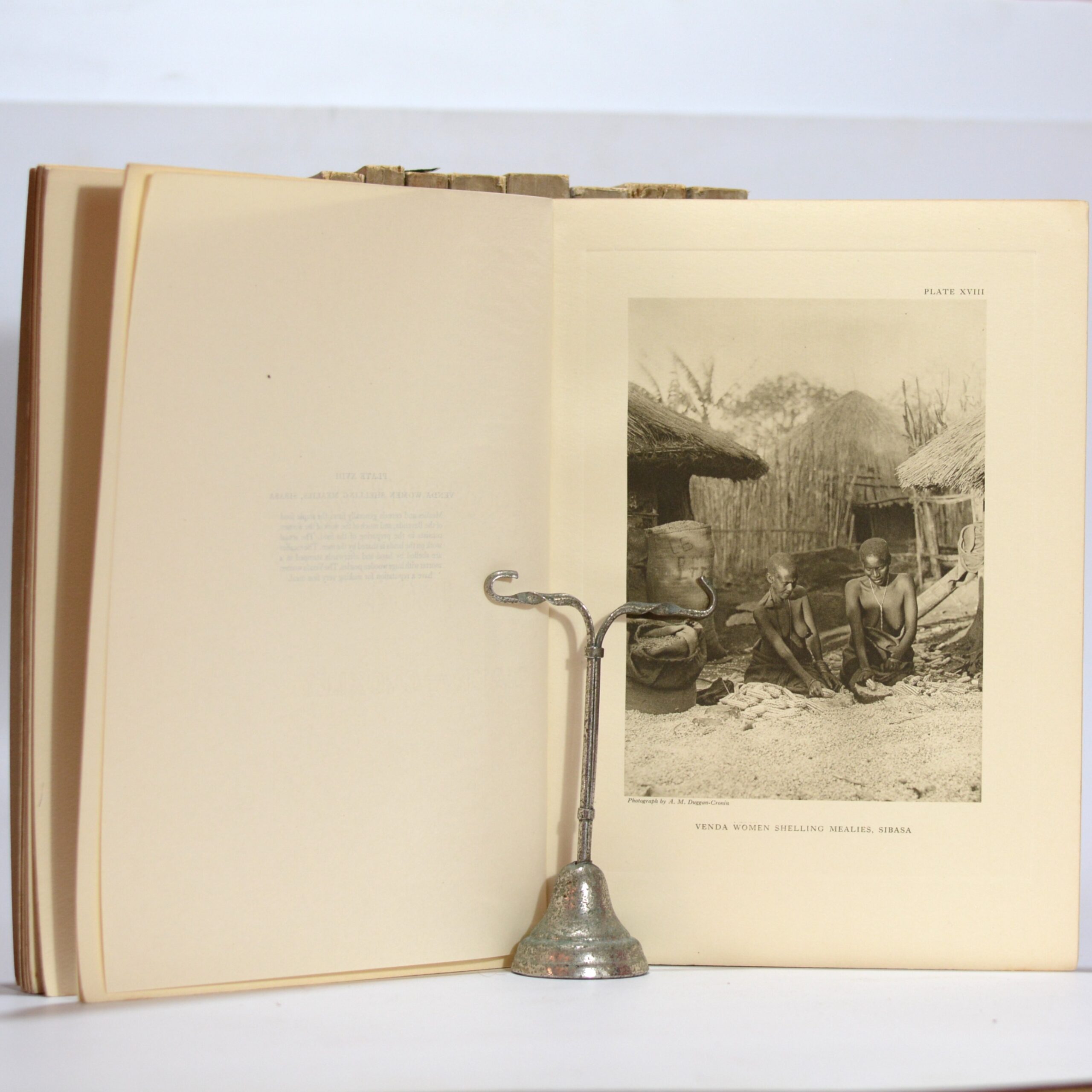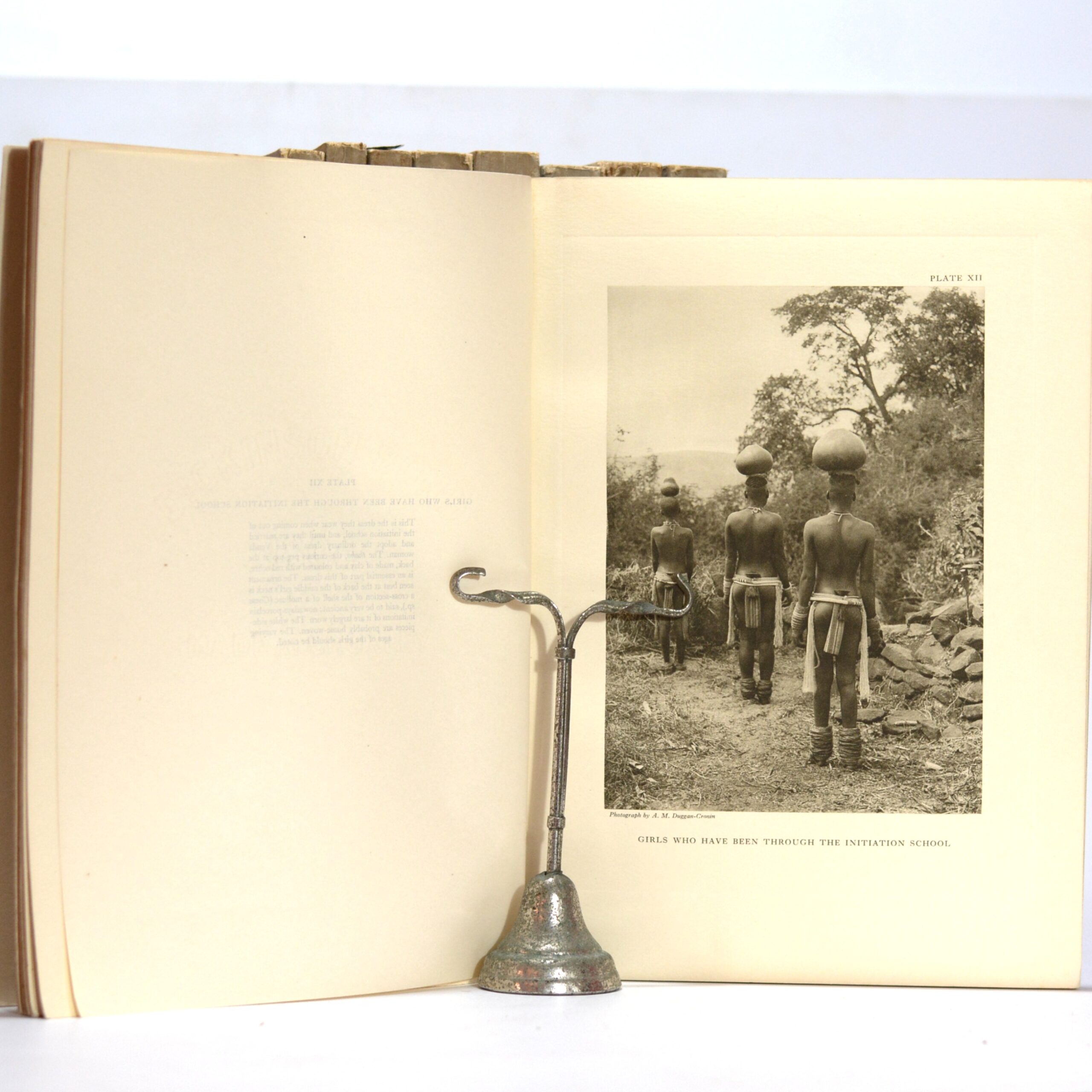 A complete set of 4 volumes in 11, with 376 collotype plates. Vol. I, one section – The Bavenda, plates I-XX, text by G.P. Lestrade Vol. II, three sections, The Sutho-Chuana Tribes, plates I-XXVI, text by G.P. Lestrade and I. Shapera. Vol. III, five sections, The Nguni, plates I-CXCVIII, text by Bennie, Wilson, Malcolm, Beemer and Hammond-Tooke. Vol. IV, two sections, plates I-LXXX, text by Junod, H. This photographic and ethnographic record of southern Africa can be seen as one of the most ambitious documentary projects of the early twentieth century. Produced over three decades, The Bantu Tribes of South Africa presents hundreds of superb collotype plates documenting the landscapes, material culture, and people of southern Africa at a moment of profound political and social transformation. Duggan-Cronin (1874–1954), an Irish-born photographer employed by De Beers in Kimberley, began photographing African migrant workers in the early 1900s. Encouraged by Maria Wilman of the Alexander McGregor Memorial Museum, and later supported by the Carnegie Trust and government grants, he undertook extensive expeditions between 1919 and 1939, travelling more than 128,000 kilometres across South Africa and into present-day Namibia, Botswana, Zimbabwe, Zambia, Mozambique, Swaziland, and Lesotho. Working under arduous conditions and developing glass plates in the field, he produced thousands of negatives from which this series was distilled. The eleven volumes encompass portraits of chiefs, families, women and children, hunters, herdsmen, and artisans, alongside carefully composed studies of dress, adornment, architecture, and landscape. Duggan-Cronin meticulously recorded dates, locations, and genealogical details, often sharing finished prints with his subjects. The plates—protected by captioned tissue guards—are accompanied by introductions, situating the images within contemporary anthropological thought. Seen in a modern context, this powerful and complex work reflects the tensions of its colonial past: at once an attempt to preserve what Duggan-Cronin believed to be “fast-disappearing” ways of life, and an artifact shaped by the racial and political ideologies of its time. An indispensable record, both as a visual archive and as a document of early twentieth-century ethnographic practice. Frequently compared to Edward Curtis’s work in North America, Duggan-Cronin’s achievement remains foundational in the history of African photography. Complete sets are increasingly scarce. Condition: Very good. Age toning to some of the wraps, particularly vol.I, section I. Some splitting at the heads and feet of the spines of 5 volumes and a little edge wear to the card wraps. Stamp removed from the front wrap of vol.II section I, a 1cm short tear to the bottom edge of vol.III, section I. Binding: Card wraps.