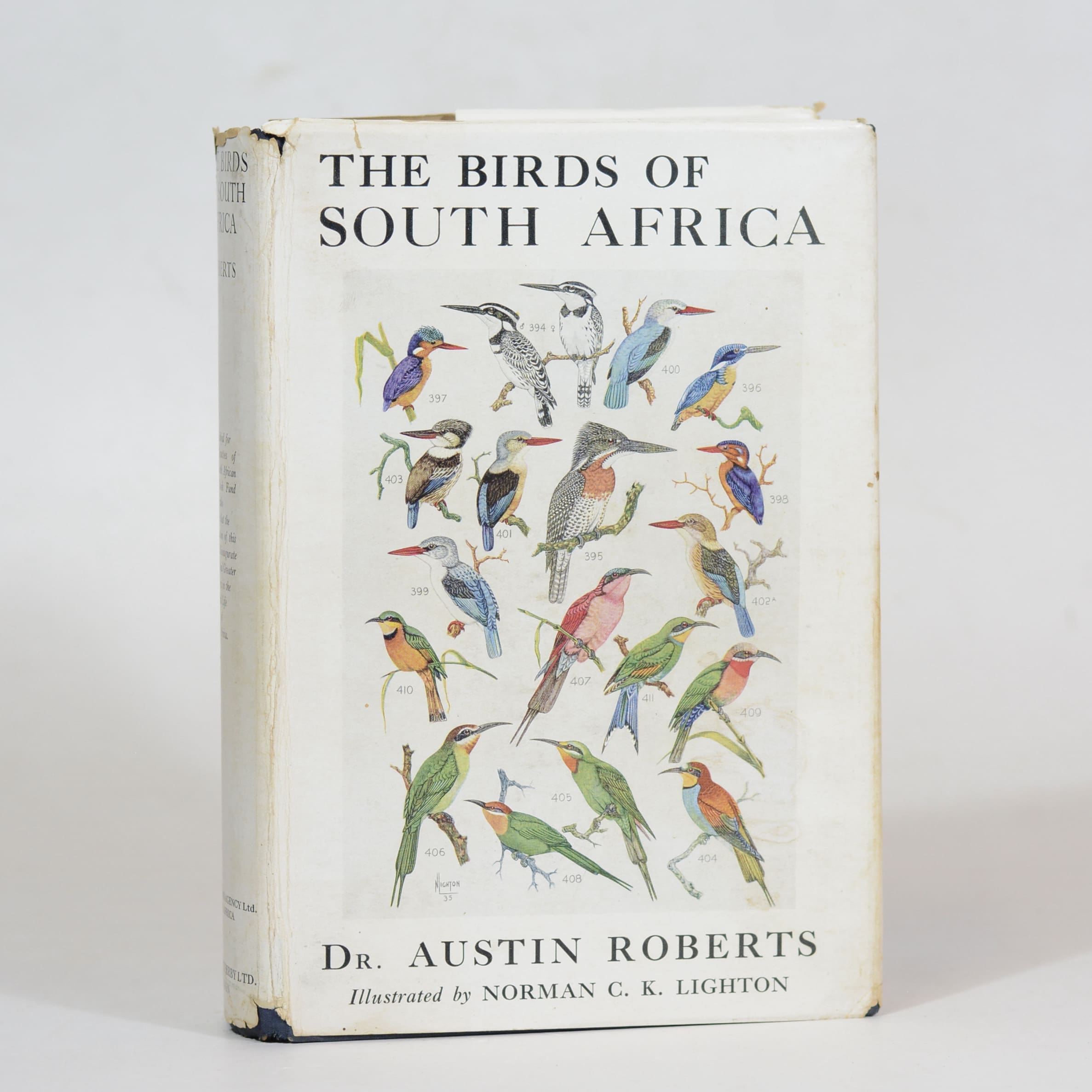 A very good copy of the first edition of this South African birding classic. Some light tape marks to the free end papers and two of the colour plates. ‘Austin Roberts’ The Birds of South Africa was first published in 1940 and has been in print ever since. In a remarkable publishing history spanning nearly 70 years, this book has been revised several times and has embraced no fewer than six editions and numerous impressions. In all, well over 300 000 copies of this well-loved work have been sold, making it one of South Africa’s most successful book ventures.’ (robertsbirds.co.za) With a frontis and 55 full colour plates by Norman Lighton. Some scattered foxing. 463 Pages.