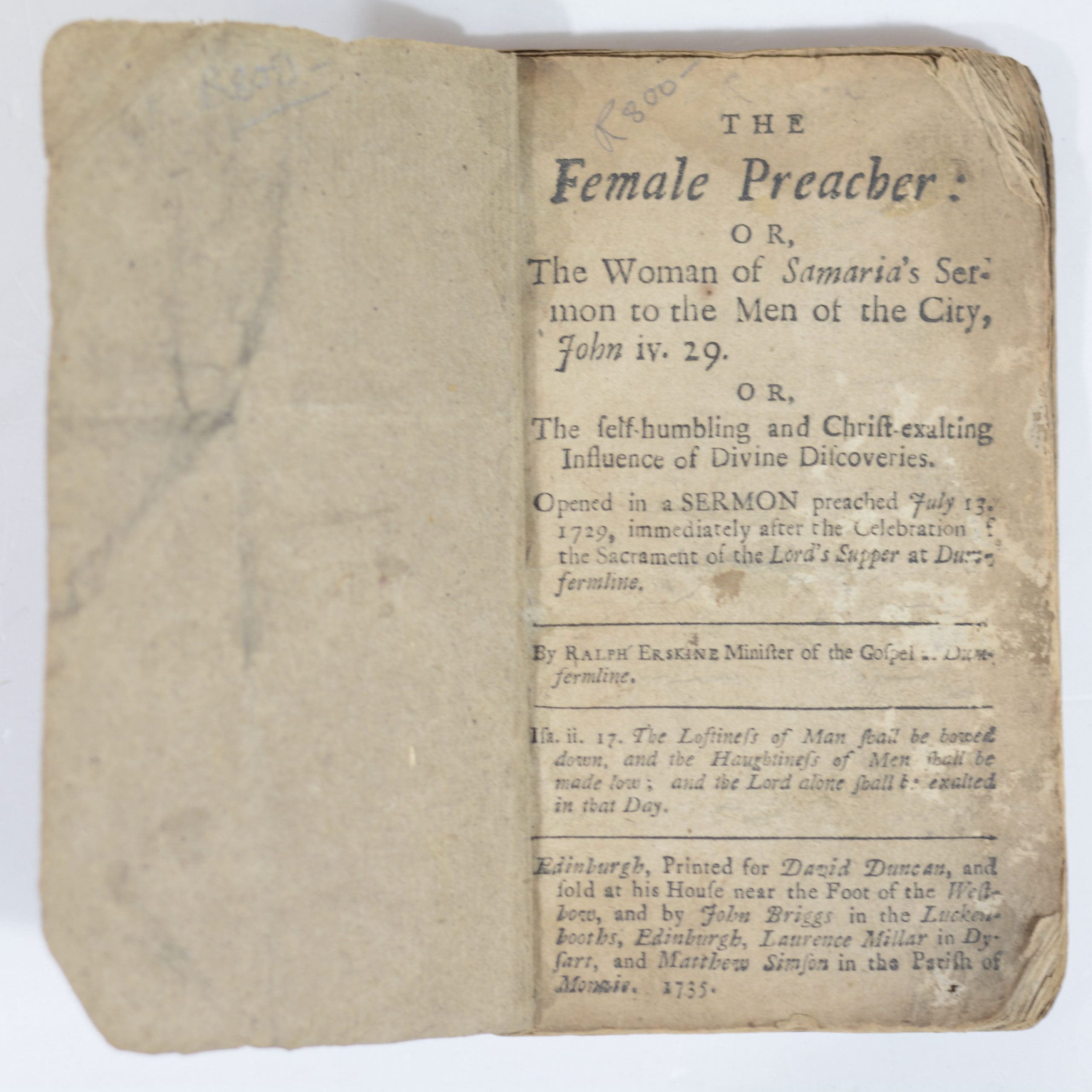 Printed for David Duncan and sold at his house near the foot of the Best-bow, and by John Briggs in the Luckenbooths, Edinburgh, Laurence Millar in Dysart and Matthews Simson in the Parish of Monsie. 1735. Dark age-toning to pages. Dog-earred corners. Some signs of staining to a few pages. Size: 15.5cm x 9.5cm x 0.7cm. 76 Pages. Condition: Fair- for its age. Binding: Softcover. Thin wraps. Dark age-toning and discolouration marks. Lacks lower corner.