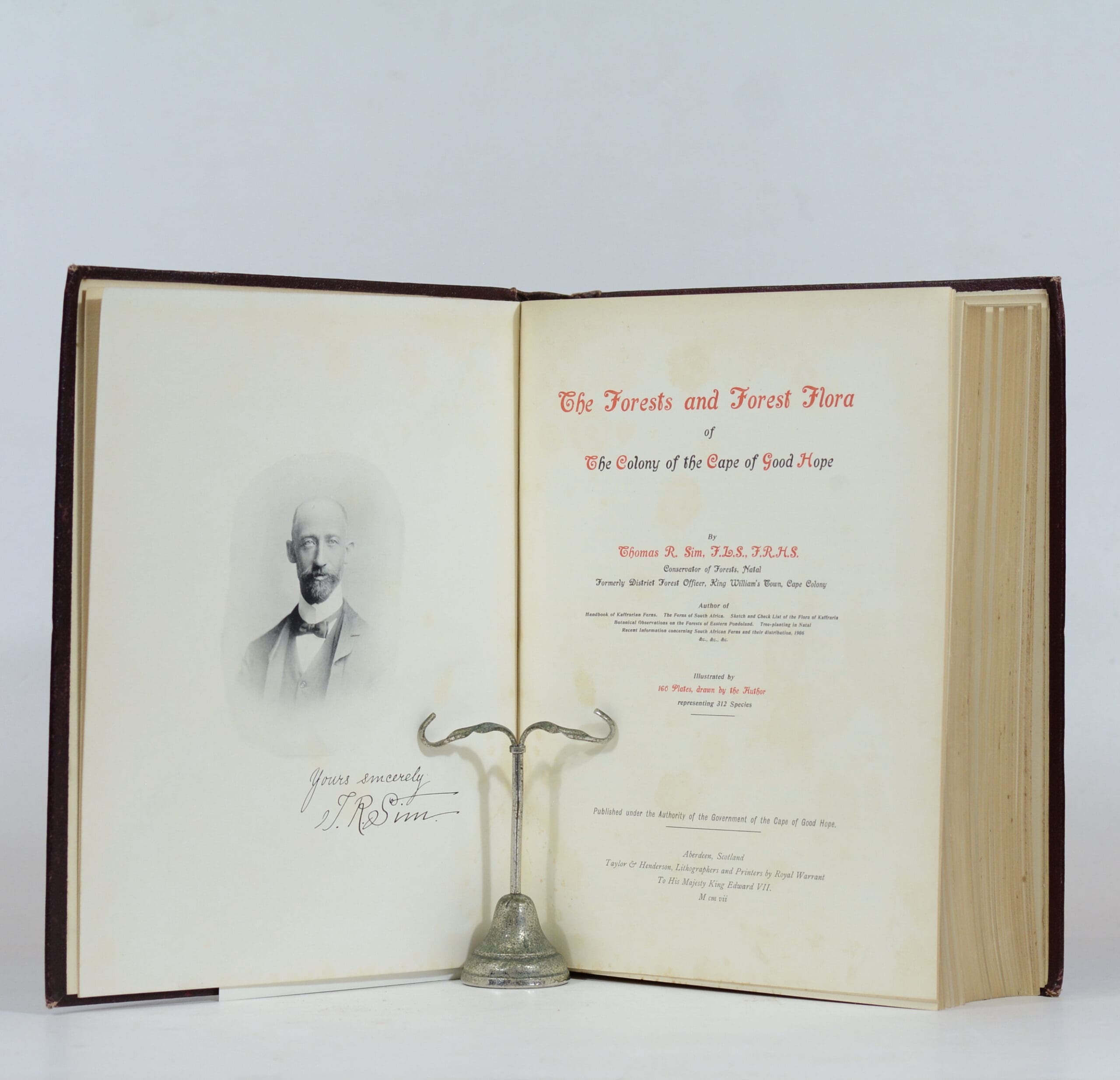 Large tome with 160 plates drawn by the Author, representing 312 species. Divided into three parts: The Forests of the Cape Colony and Factors Affecting Them; Forest Flora of Cape Colony and illustrations of the Species (plates I to CLX). Cloth covered boards with some sunning to the spine. Large folding map to the rear. Foxing to a few plates. Map at rear. 361 pages.
