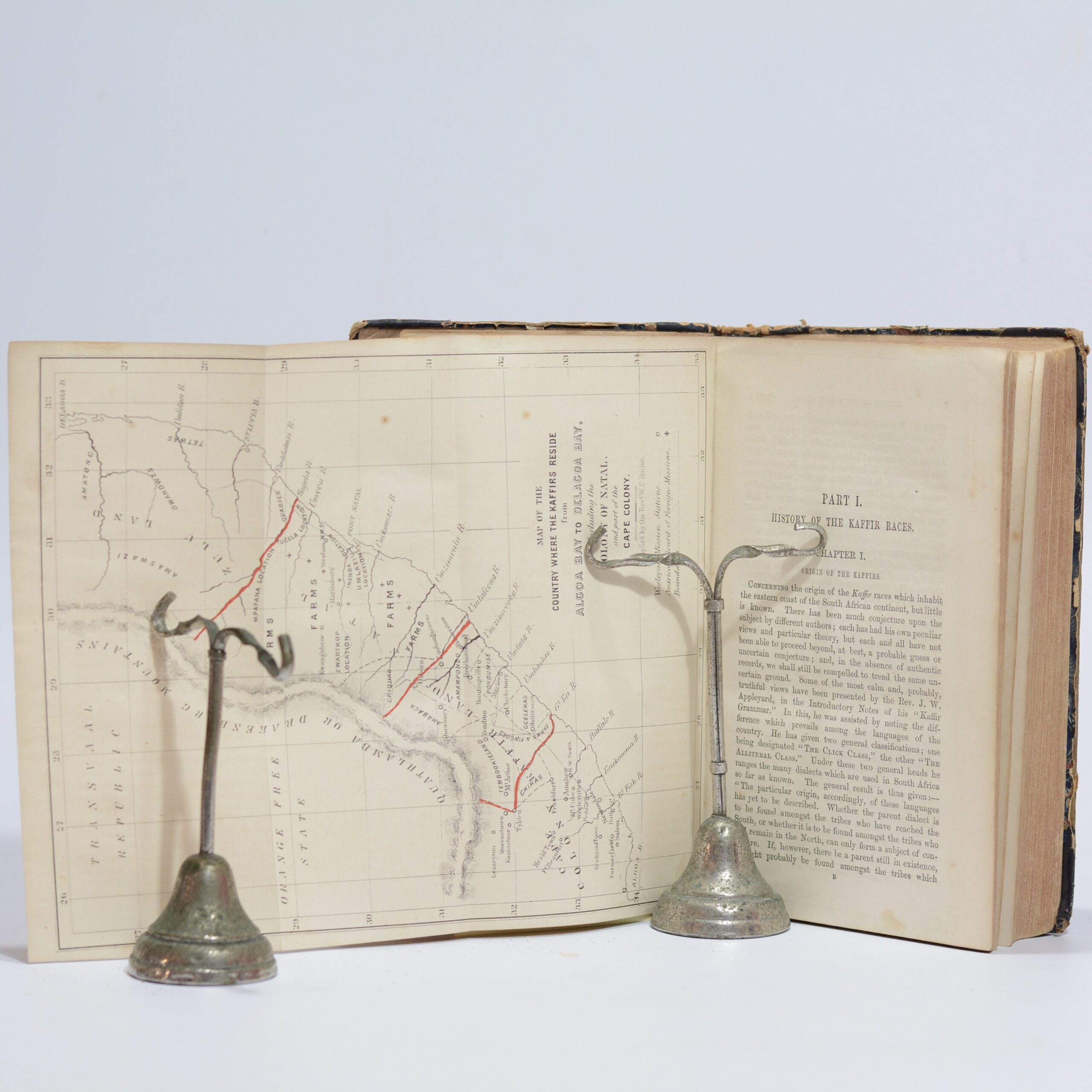 Exploring the history, customs, and prospects of the Xhosa people in South Africa, focusing on British colonial interaction and Methodist missionary work. In Three Parts: I. Their History; II. Their Manners and Customs; III. The Means Needful for their Preservation and Improvement. Includes a map and illustrations. Split to rear end papers. Scattered foxing. 516 Pages.