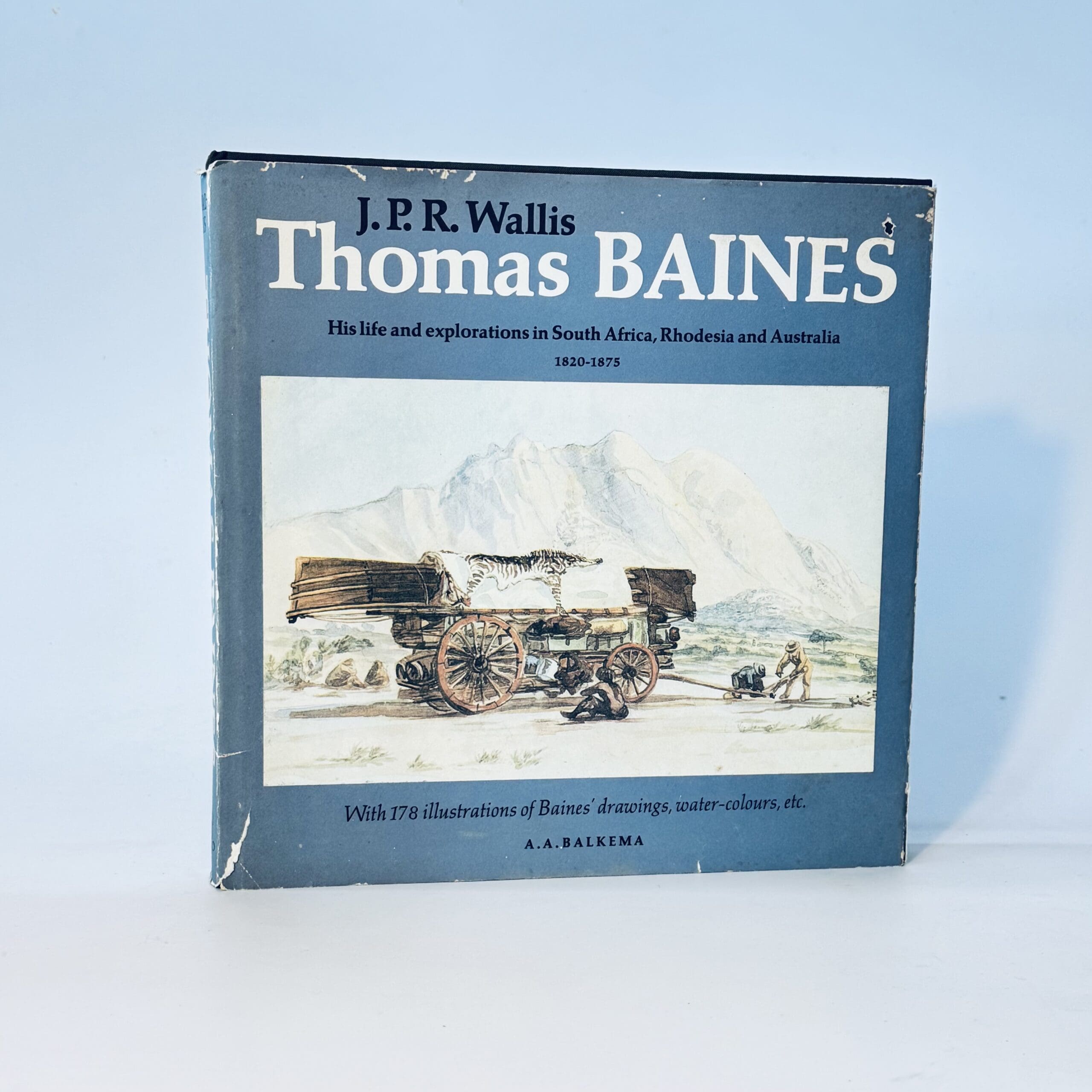 Well-documented illustrated biography with a selection of Thomas Baines’ water-colours (8 colour), and approximately 170 monochrome illustrations. With captions and a new introduction by F R Bradlow. Mild thumbing. Contents clean and firmly bound. 235 Pages. Second Edition. Condition: Very good. Dust jacket: Fair. Edge-wear to extremities. A couple of 4cm tears. Creasing with some abrasions to the folds. Some sunning. Binding: Hardcover. Cloth boards with gilt device.