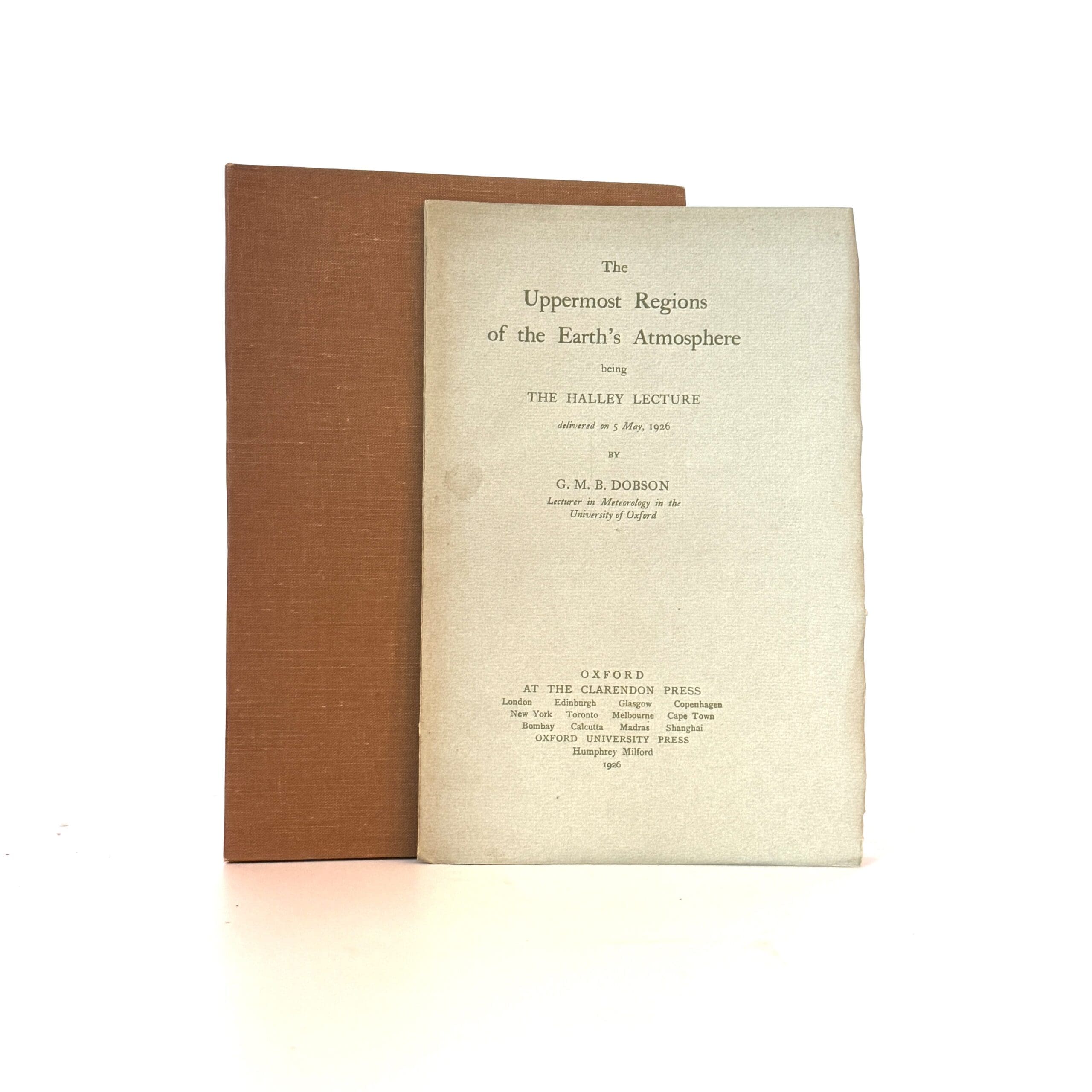 The Halley Lecture. Delivered on 5 May, 1926. Bookplate with some foxing on verso of front board. Some toning to the protective case. Previous owner’s signature on title page. 5 illustrations. Deckle edging. 22 Pages. Contents clean and binding firm. Condition: Good+. Binding: Softcover. In protective three fold flap case. Thin card-wraps with some light edge-wear and sunning to edges.