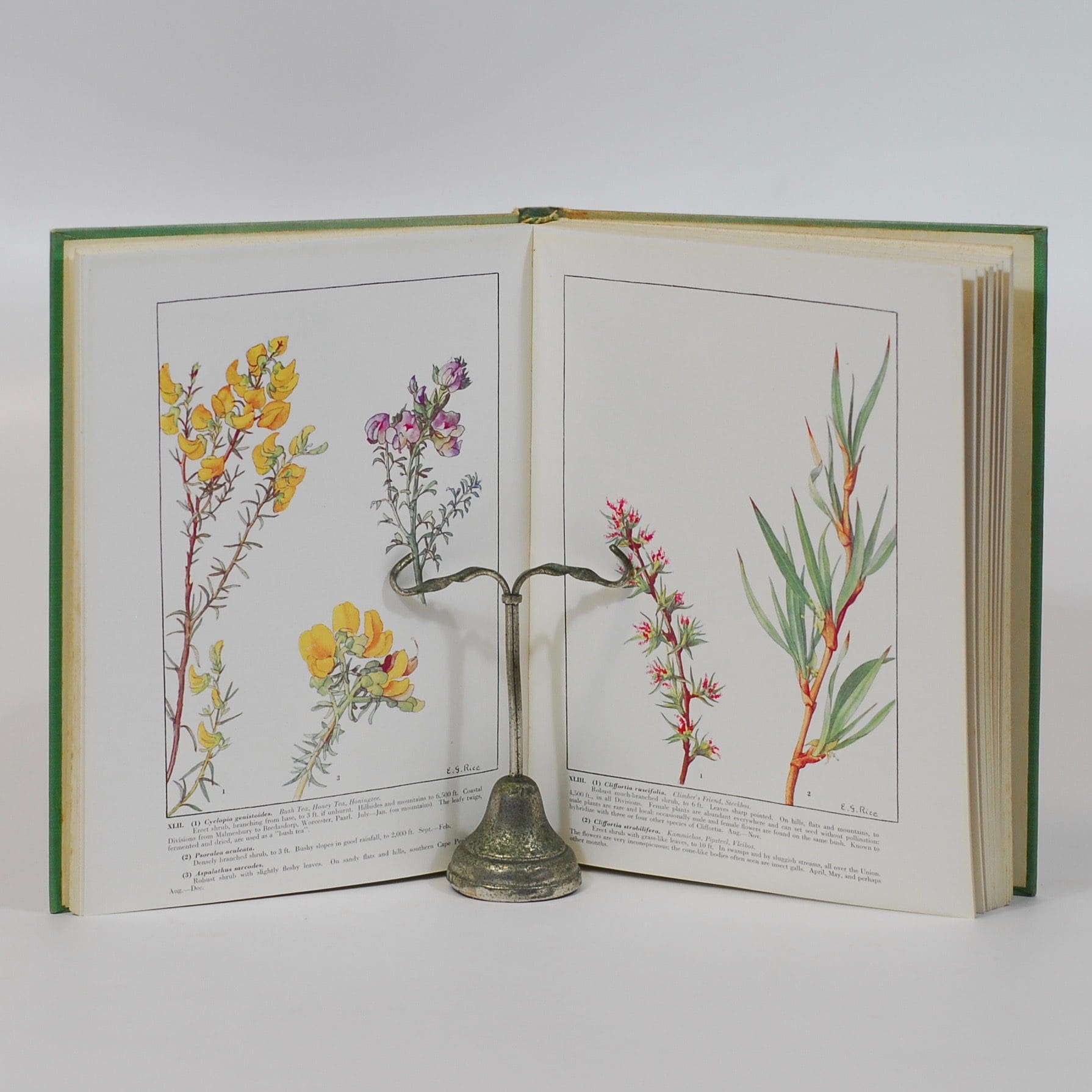 Beautifully illustrated volume of the Cape flora. Fully illustrated with 250 colour plates. Ex Libris bookplate on front fep as well as an additional owner’s name in blue ink. Small faded bookseller’s label on front paste-down. Some foxing to front and rear prelims. Contents clean and firmly bound. 1st Edition. Condition: Good++ No dust jacket. Binding: Hardcover. Light green boards with gilt lettering on spine. Sunning and a few discolouration marks on the front cover. Some light edge-wear mostly to the spine.