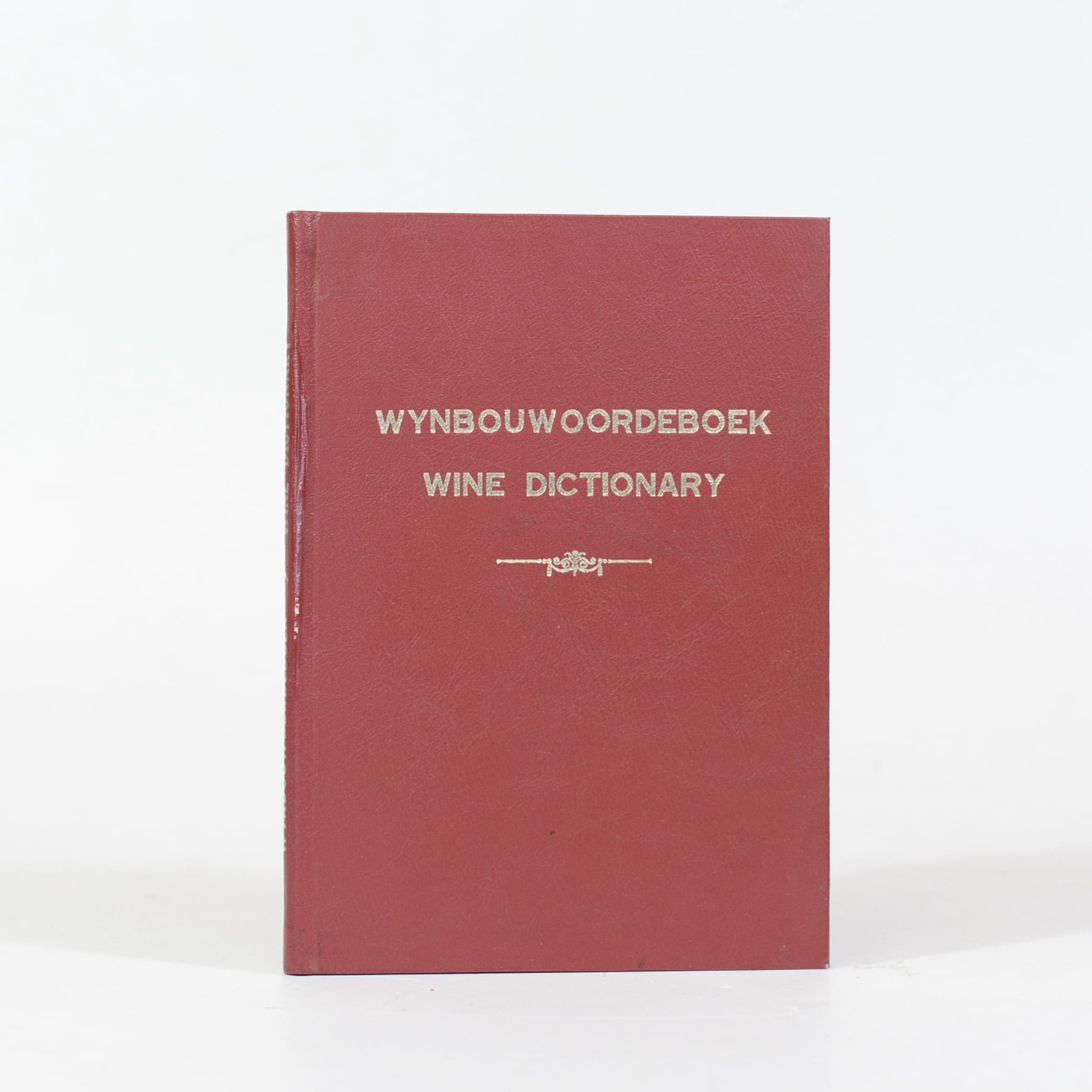Text: English/Afrikaans – Afrikaans/English. The object of this dictionary was to assemble in a comprehensive bilingual lexicon the essential terminology of the wine industry in general and the South African wine industry in particular. 80 Pages. Contents clean and binding sound. 1st Edition. Condition: Very good. Binding: Hardcover. Faux leather.